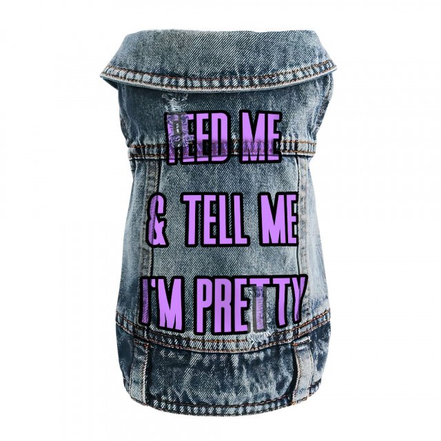 Feed Me Dog Denim Jacket – Word Design Dog Denim Coat – Dog Theme Dog Clothing