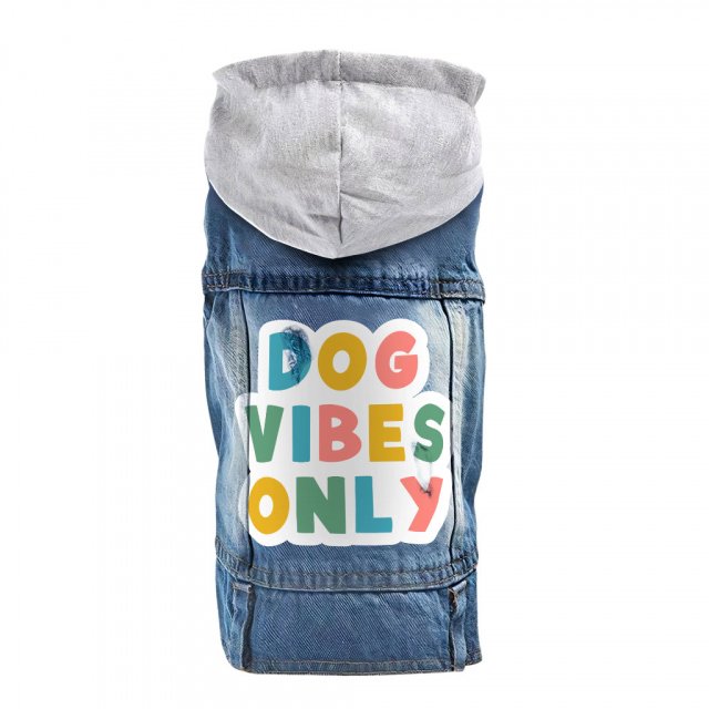 Dog Vibes Only Dog Denim Jacket – Word Art Dog Denim Coat – Cute Dog Clothing