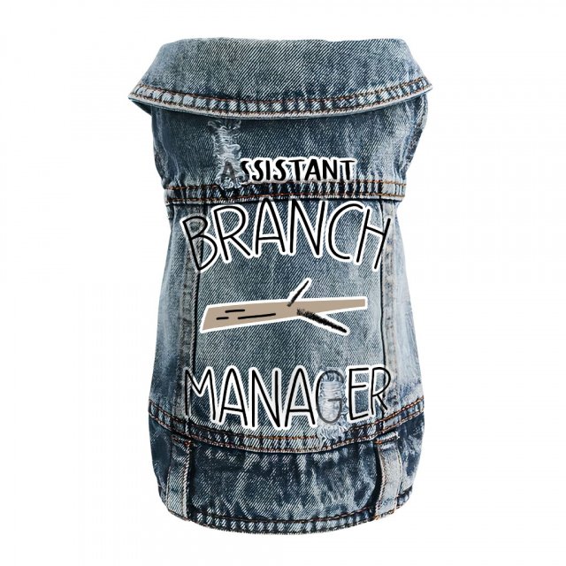Assistant Branch Manager Dog Denim Vest – Minimalist Dog Denim Jacket – Print Dog Clothing