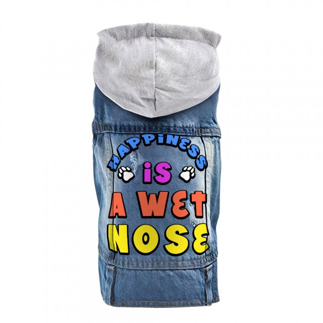 Happiness Is a Wet Nose Dog Denim Jacket – Colorful Dog Denim Coat – Quote Dog Clothing