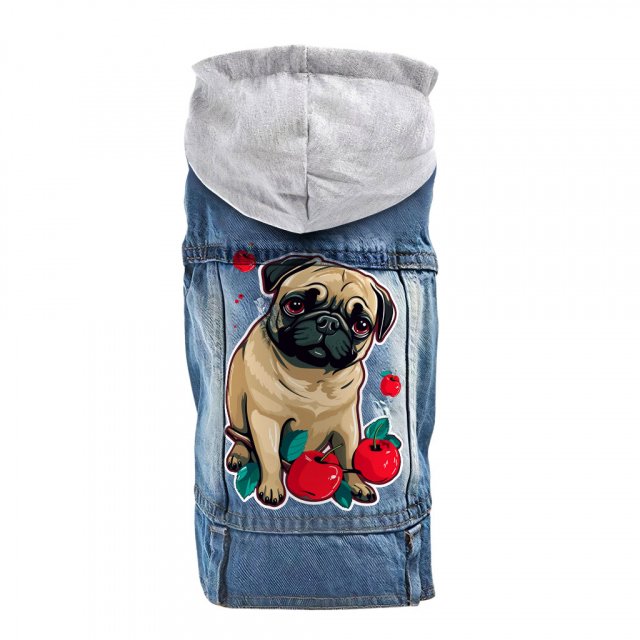 Puppy Print Dog Denim Jacket – Berries Dog Denim Coat – Art Dog Clothing