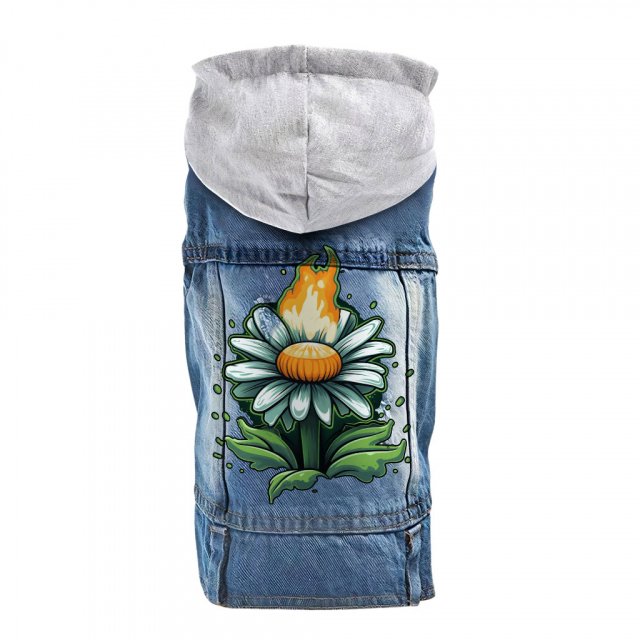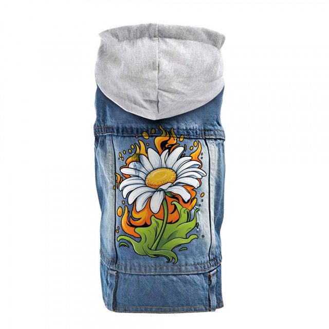 Flame Flower Dog Denim Jacket – Chamomile Dog Denim Coat – Fire Dog Clothing