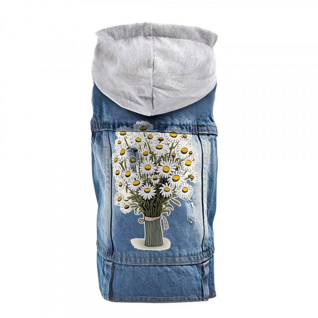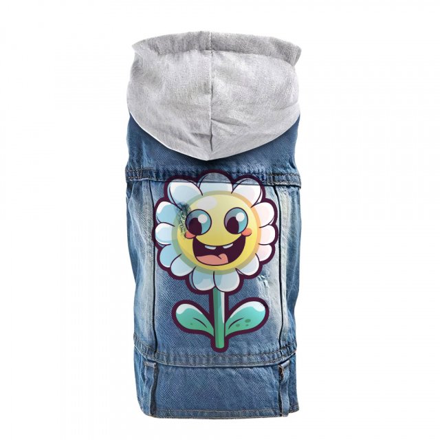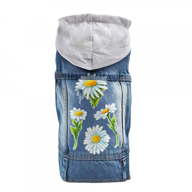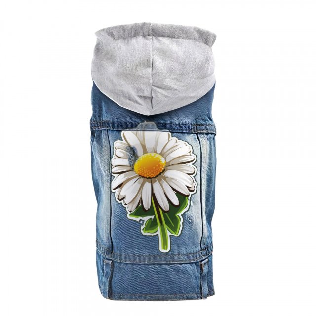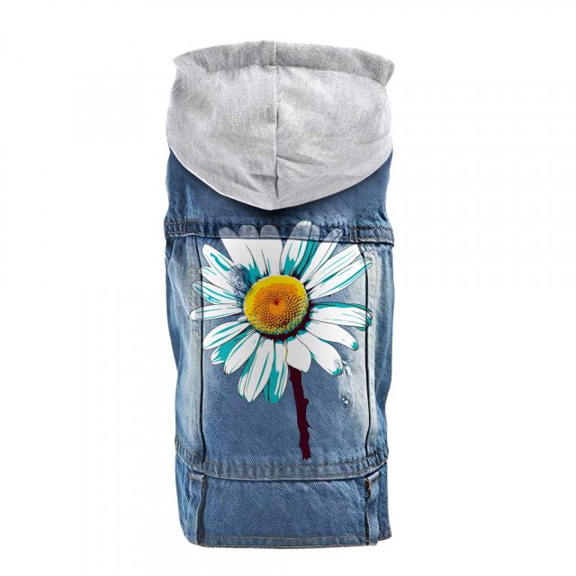 Funny Chamomile Dog Denim Jacket – Unique Dog Denim Coat – Flower Dog Clothing