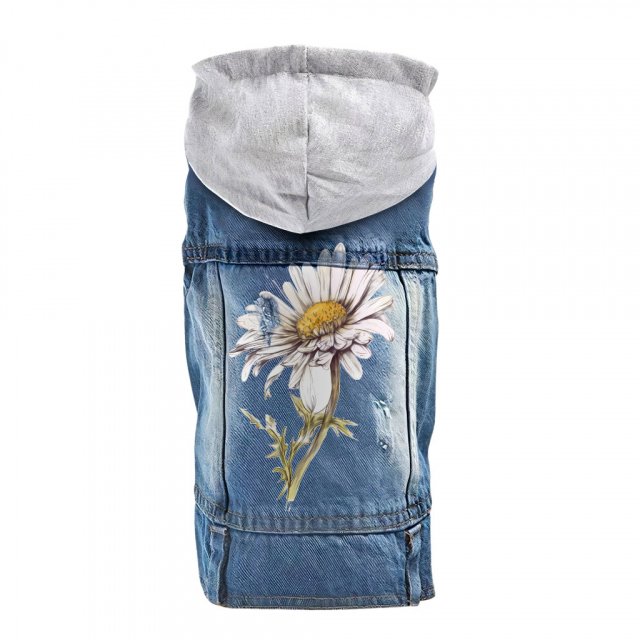 Chamomile Graphic Dog Denim Jacket – Flower Dog Denim Coat – Beautiful Dog Clothing