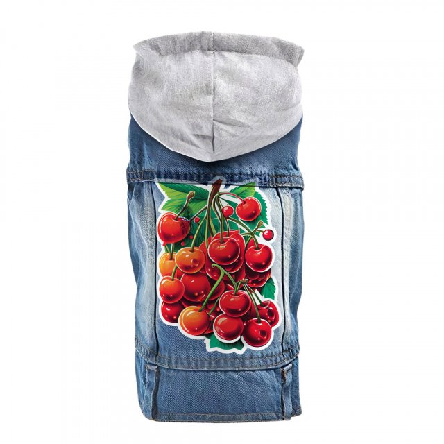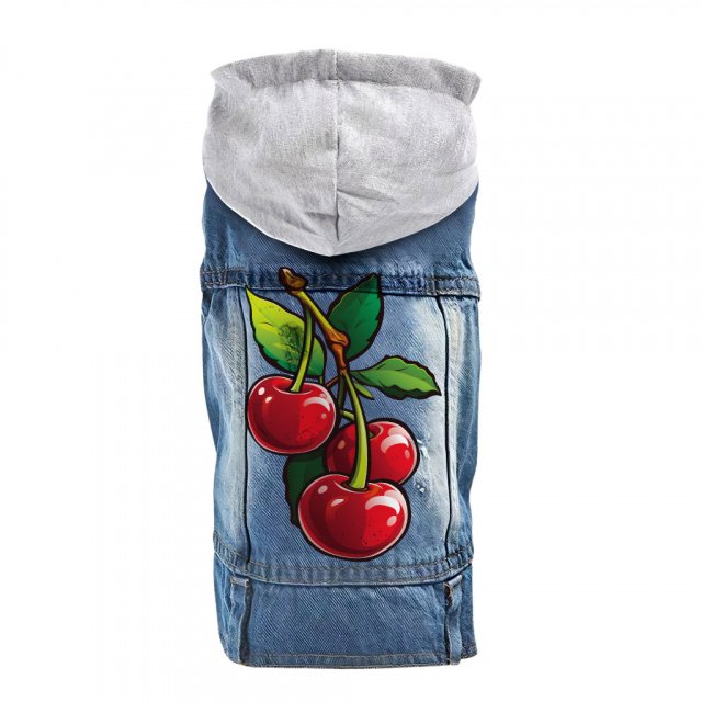 Cherry Print Dog Denim Jacket – Artwork Dog Denim Coat – Branch Dog Clothing