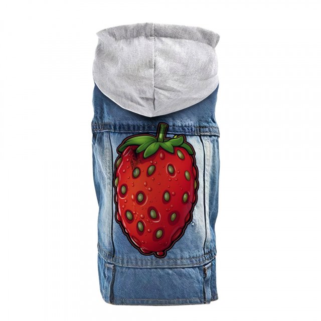 Strawberry Print Dog Denim Jacket – Art Dog Denim Coat – Berry Dog Clothing