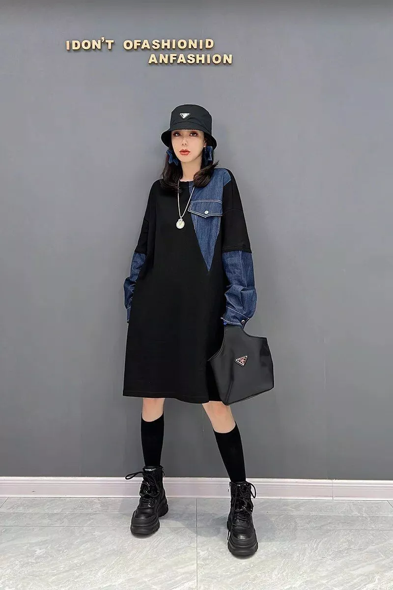 Embrace the allure of the season with our latest addition – the Knee-Length Denim Patchwork Dress. Designed for the modern woman, this dress is the quintessence of Korean fashion trends that balance comfort with streetwear chic. Whether you’re stepping out for a casual meet-up or dressing up for a night on the town, this dress is sure to turn heads and spotlight your fashion-forward spirit.