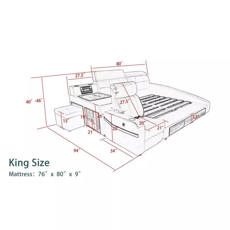 Experience the pinnacle of luxury and functionality with our Luxury King Bed, featuring built-in massage and ample storage. Crafted to provide the perfect blend of comfort, elegance, and convenience, this bed is a must-have for anyone looking to elevate their bedroom experience. Its sleek design and high-quality materials make it a standout piece in any modern bedroom.