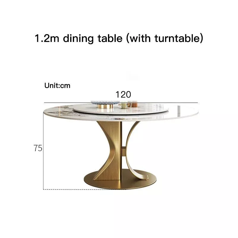 Transform your dining space into a bastion of luxury with our Marble Round Dining Table. Meticulously crafted for those who appreciate the finer things in life, this table is not just a piece of furniture, but a statement of sophistication. The resplendent gold stainless steel frame supports a majestic slate top, where every meal becomes a celebration. With its built-in turntable, this dining table promises to elevate your dining experience to a new level of convenience and style.