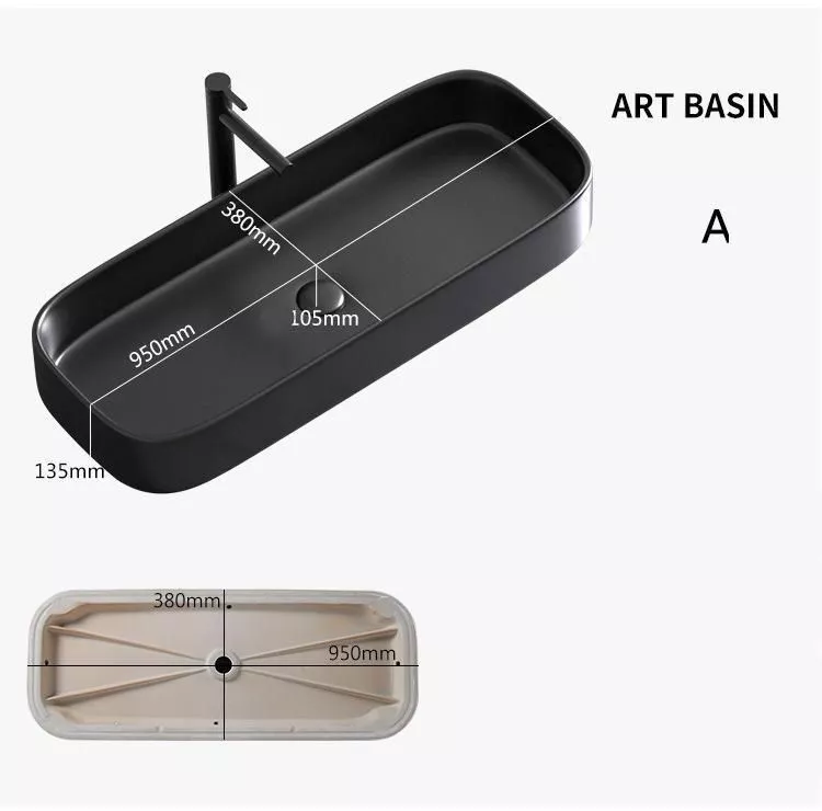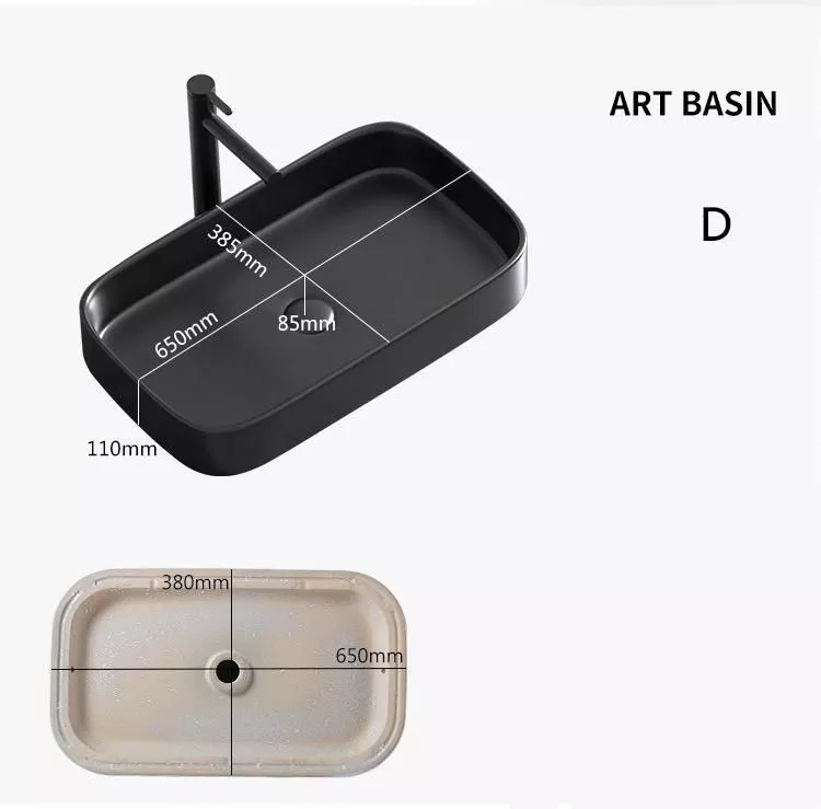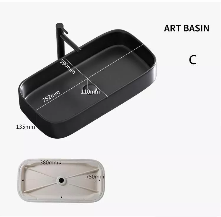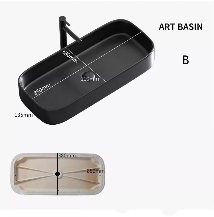 Our Matte Black Ceramic Wash Basin is not just visually appealing but is also designed for practicality. Its glaze spraying process ensures a smooth, non-porous surface that is easy to clean and maintain. The rectangular design provides ample space for comfortable use, making it ideal for both busy mornings and relaxing evenings. Whether renovating or building a new bathroom, this basin is a perfect choice for adding a touch of luxury.