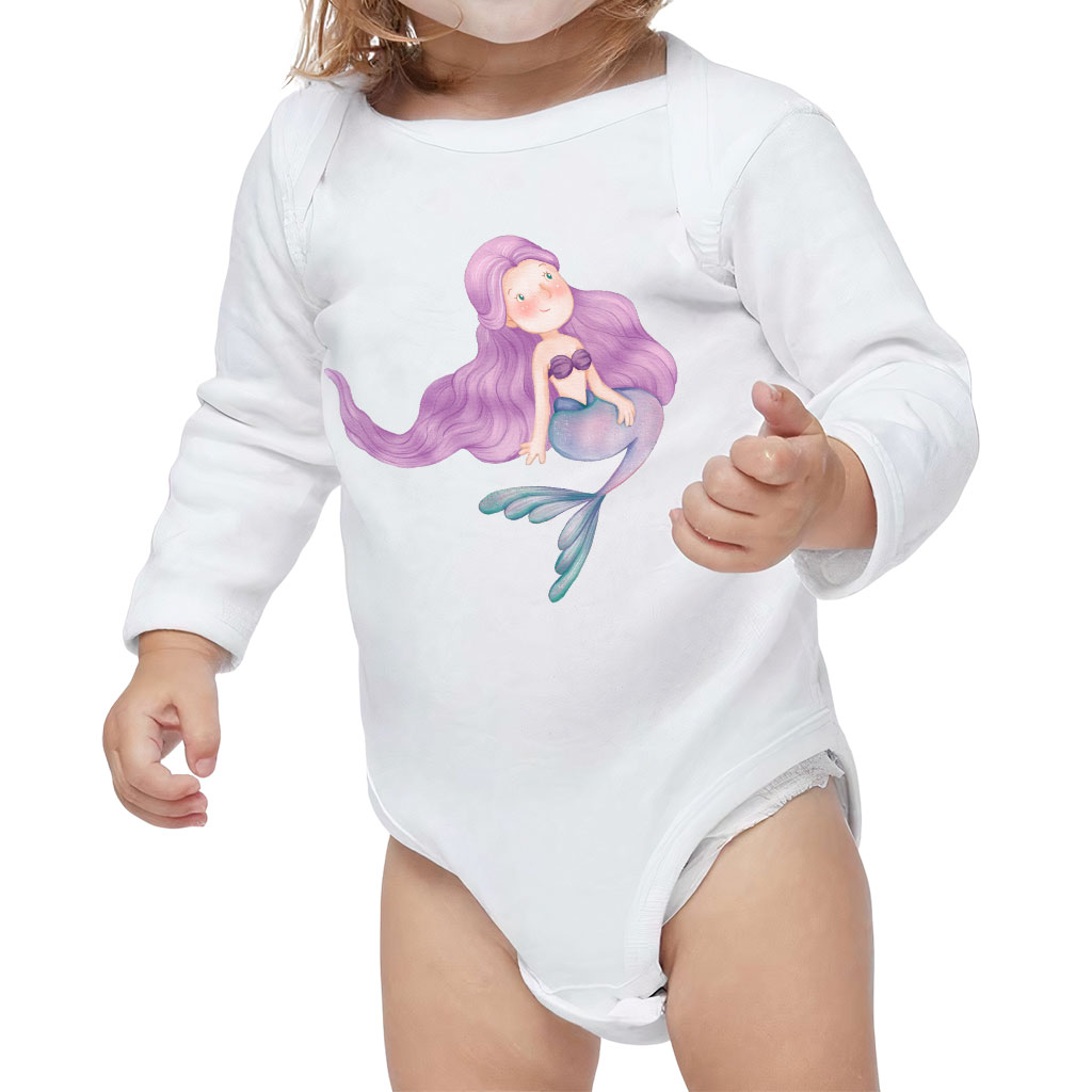 Mermaid Graphic Baby Long Sleeve Onesie is made of 100% Cotton which makes it soft on the skin, breathable, lightweight, and comfortable to wear. Made of high-end materials, with sturdy stitching and non-fade colors, these bodysuits are extra-durable.
