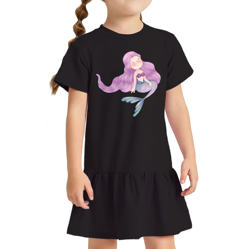 Mermaid Graphic Toddler Rib Dress – Beautiful Girls’ Dress – Print Toddler Dress