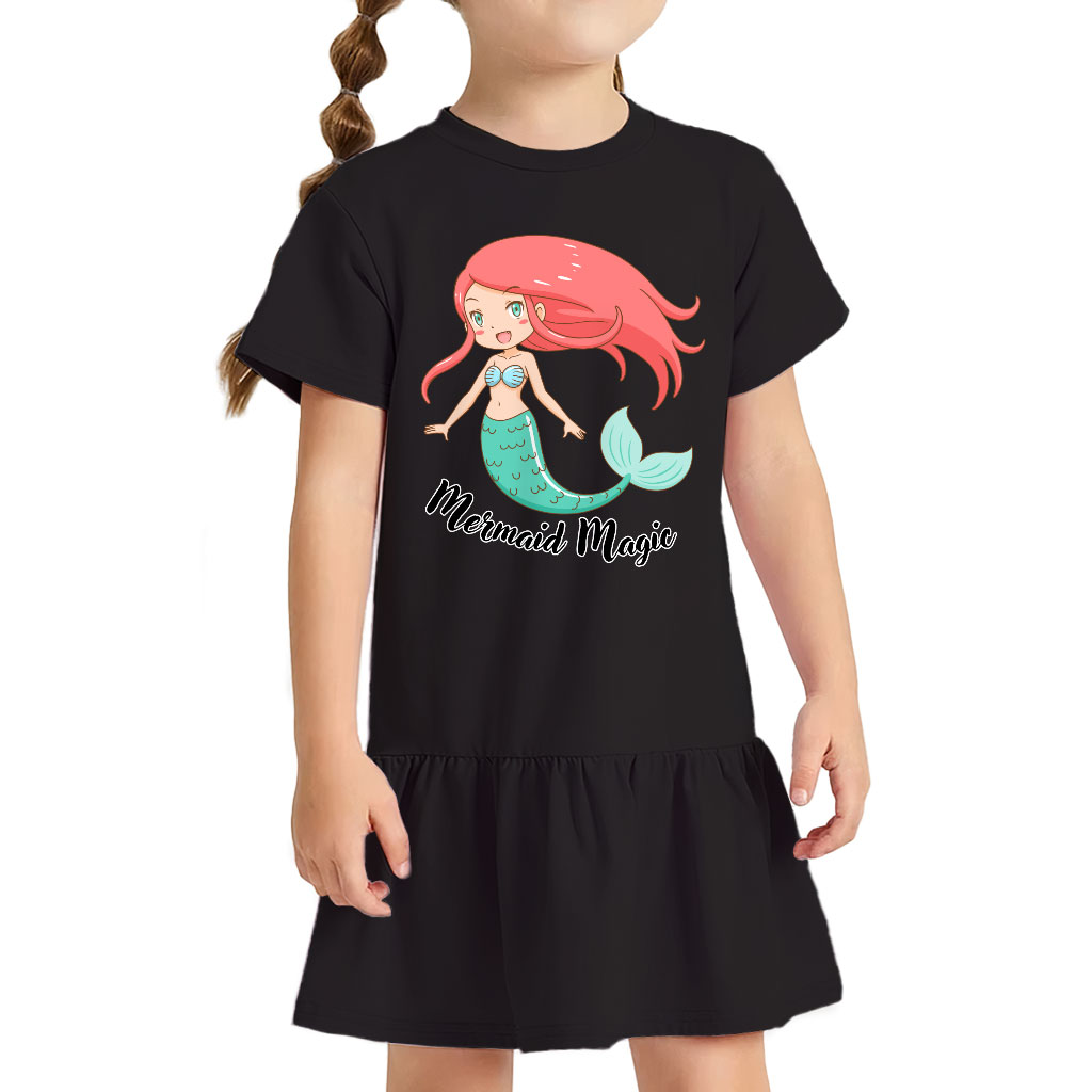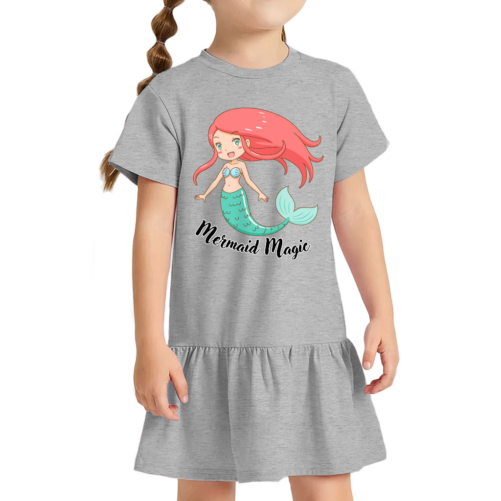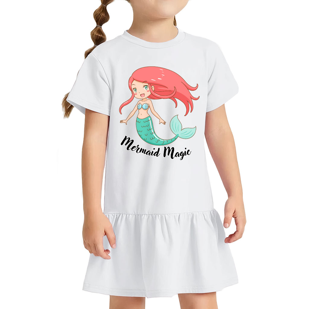 The design is printed on a soft, comfortable, 100% combed ringspun cotton short-sleeve dress. Mermaid Magic Toddler Rib Dress will become a staple in your child’s wardrobe.