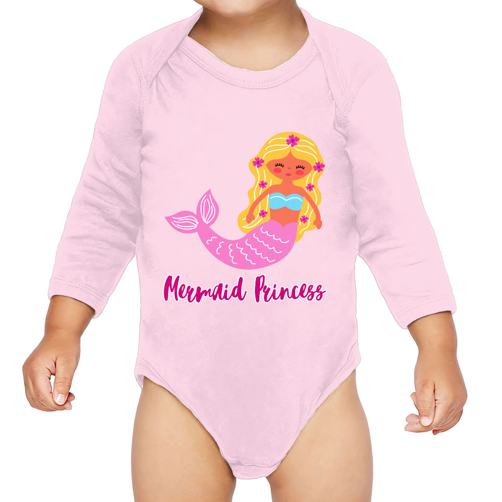 Mermaid Princess Baby Long Sleeve Onesie is made of 100% Cotton which makes it soft on the skin, breathable, lightweight, and comfortable to wear. Made of high-end materials, with sturdy stitching and non-fade colors, these bodysuits are extra-durable.