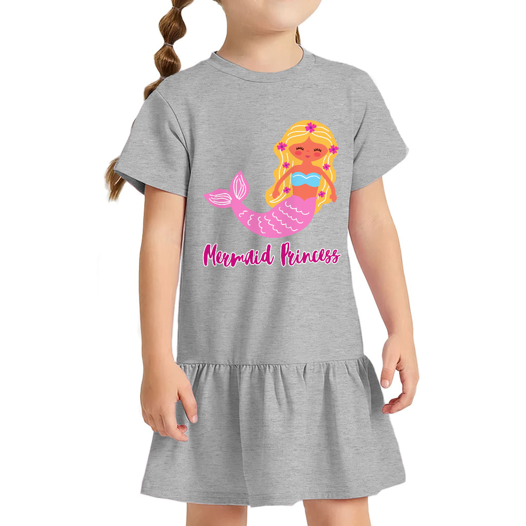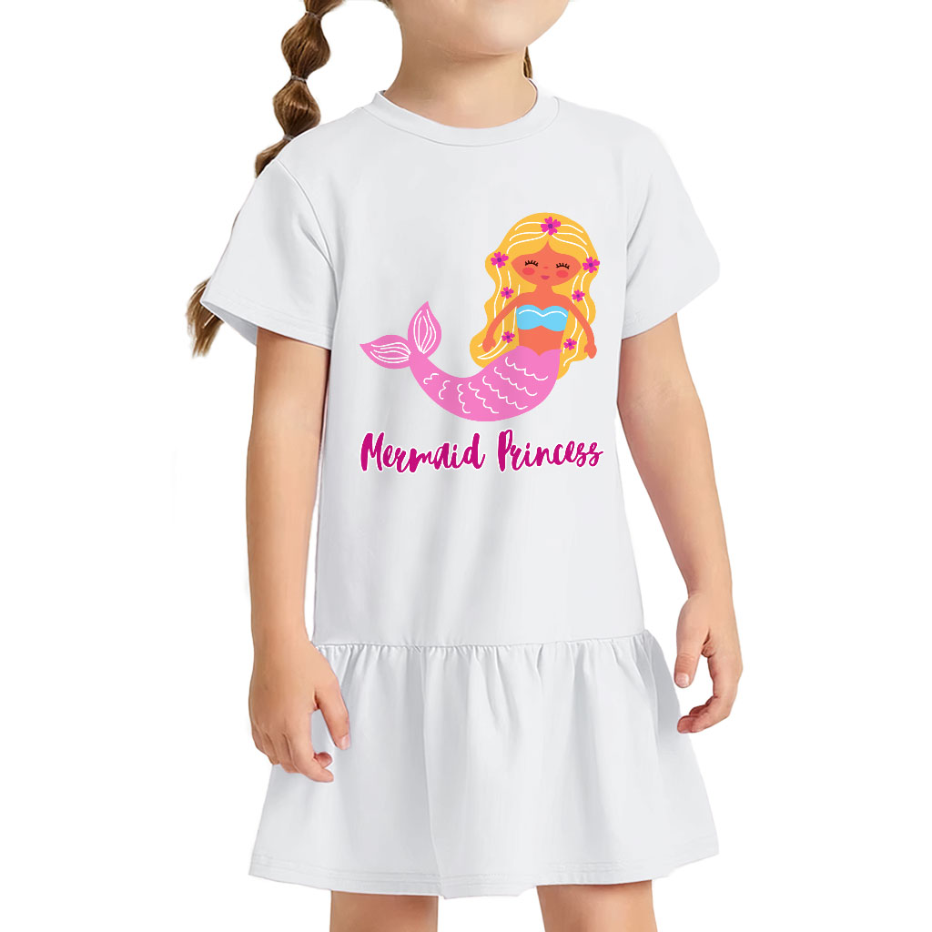 The design is printed on a soft, comfortable, 100% combed ringspun cotton short-sleeve dress. Mermaid Princess Toddler Rib Dress will become a staple in your child’s wardrobe.