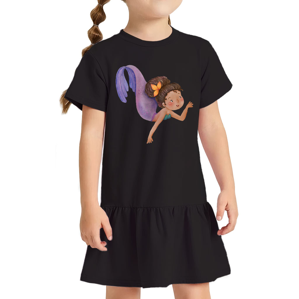 The design is printed on a soft, comfortable, 100% combed ringspun cotton short-sleeve dress. Mermaid Print Toddler Rib Dress will become a staple in your child’s wardrobe.