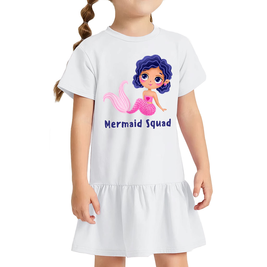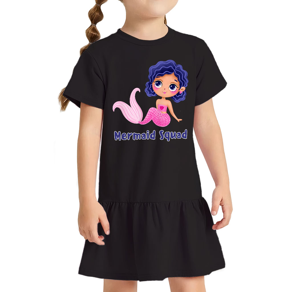 The design is printed on a soft, comfortable, 100% combed ringspun cotton short-sleeve dress. Mermaid Squad Toddler Rib Dress will become a staple in your child’s wardrobe.