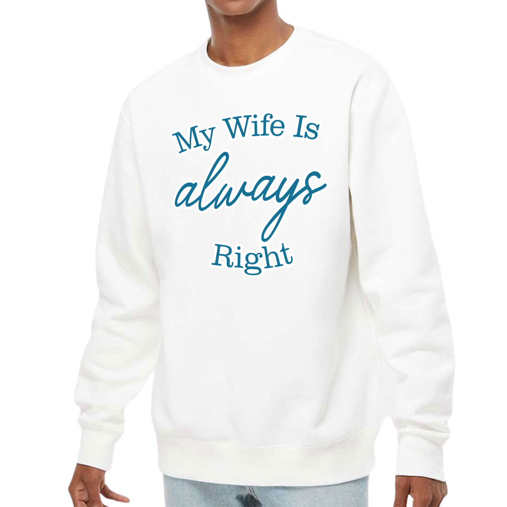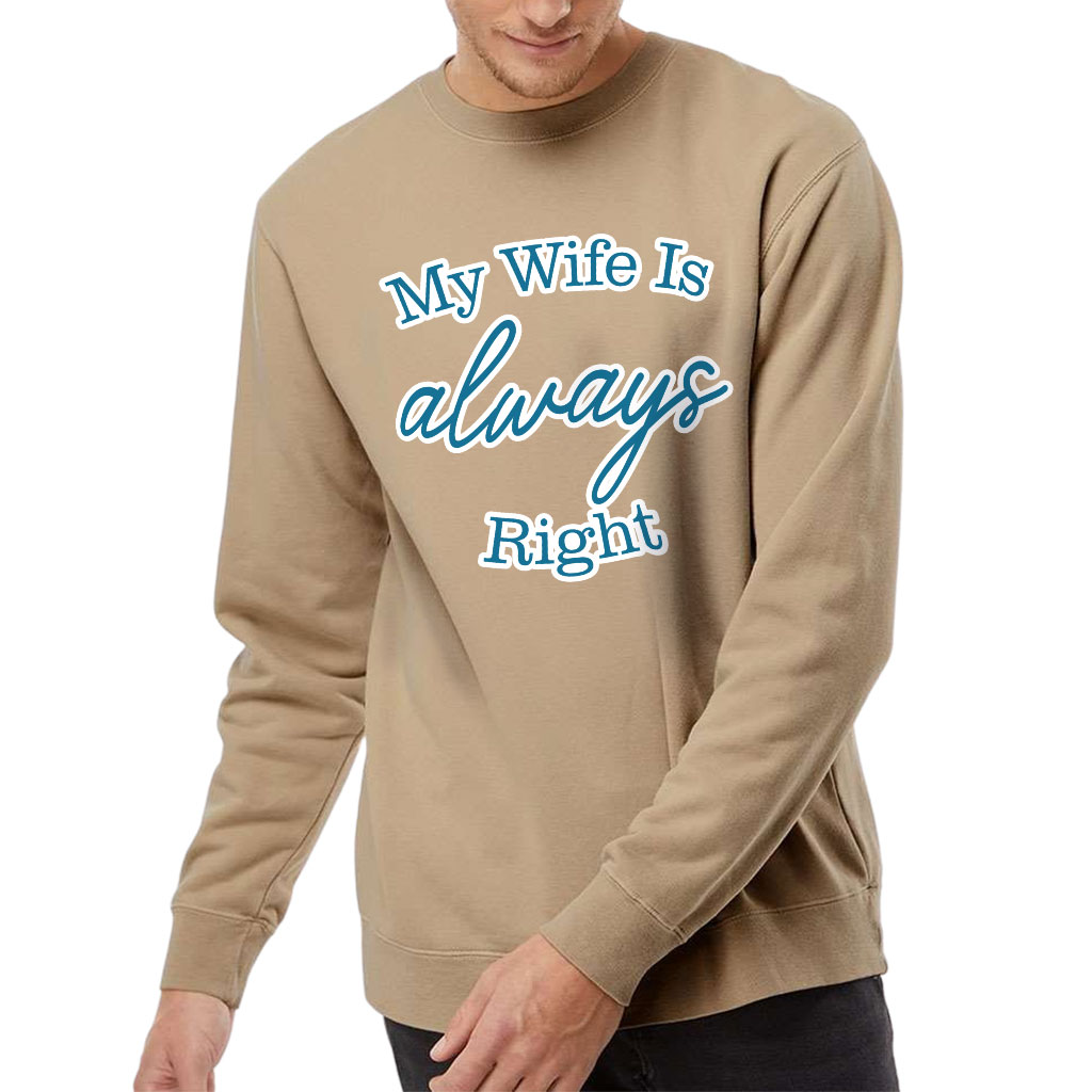 My Wife Is Always Right Midweight Sweatshirt will definitely be loved by everyone. It is the perfect gift for Birthdays, anniversaries, graduation ceremonies, Valentine’s Day, Christmas, Father’s Day, Thanksgiving, or any special event.