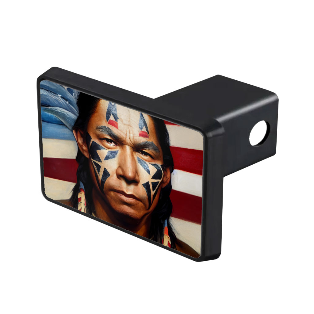 Native American Trailer Hitch Cover is made from aluminum which is waterproof, UV resistant, and suitable for any weather conditions. Perfect for the road.