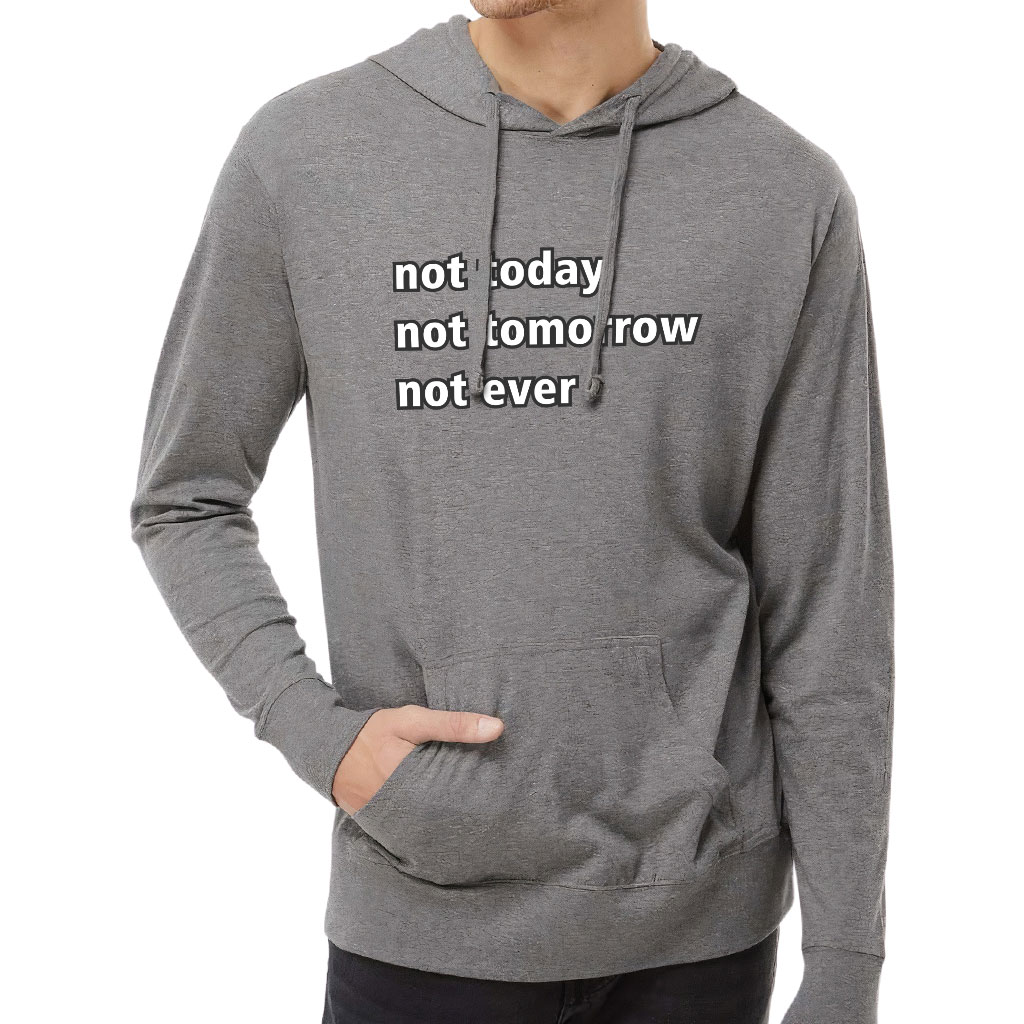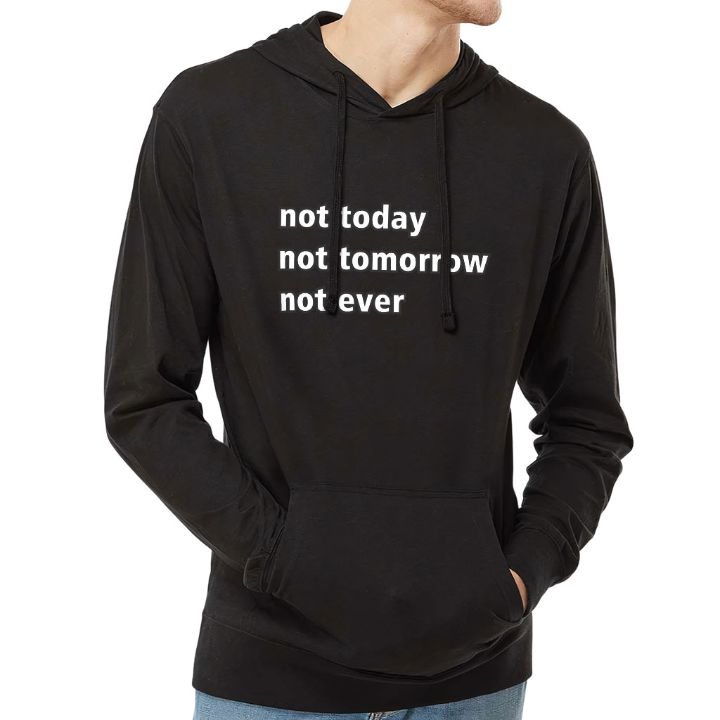 Not Today Lightweight Jersey Hoodie works easily with a variety of outfits and is perfect for pairing with shorts, jeans, sneakers, and more. Suitable for summer, spring, autumn, and winter.