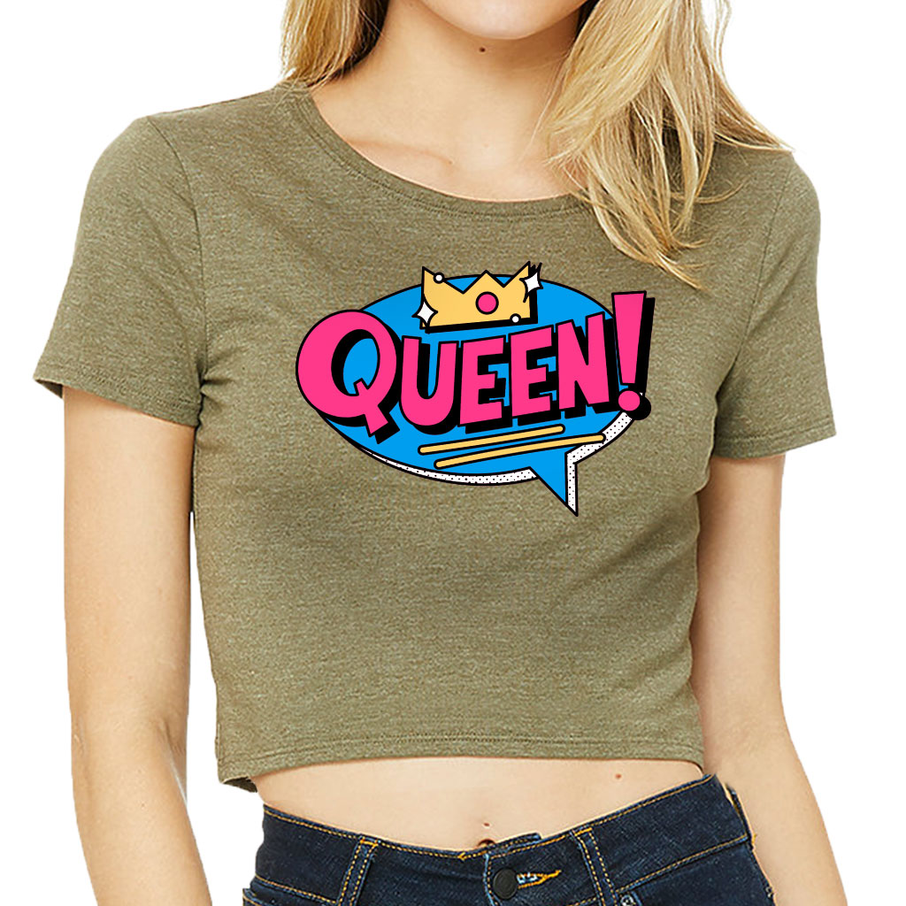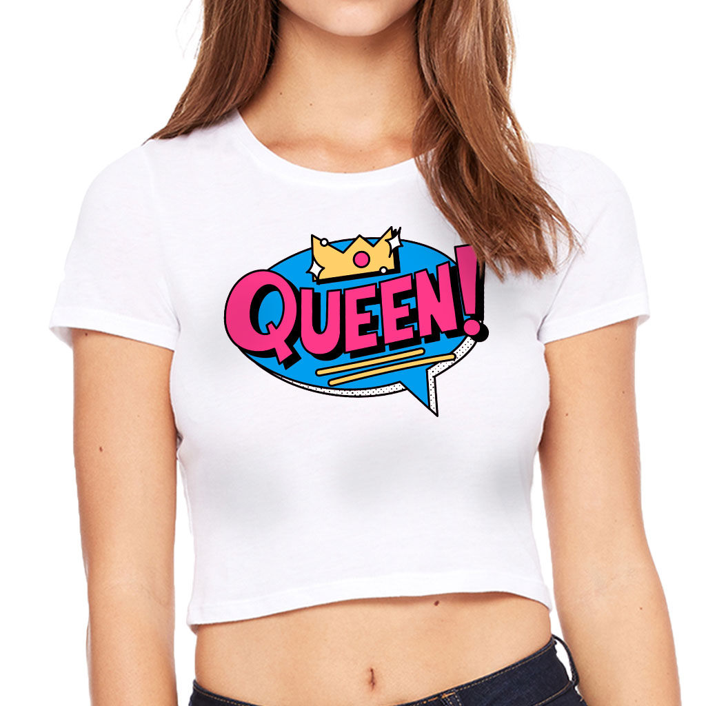 Queen Graphic Women’s Cropped T-Shirt – Crown Crop Top – Word Art Cropped Tee