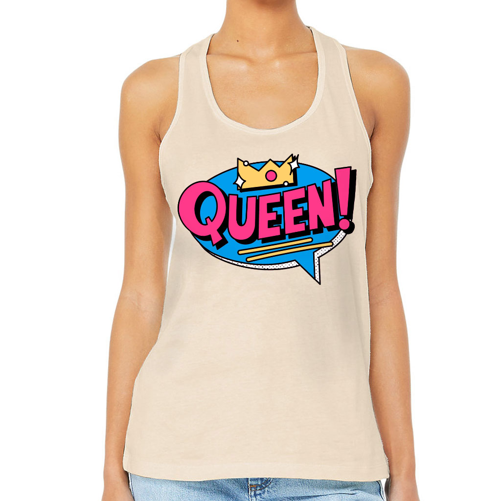Queen Graphic Women’s Racerback Tank features a flattering racerback, relaxed fit. Wearing our ideal racerback tank, women will feel the ultra-softness of cotton. This product never disappoints if you want a piece of clothing to feel cool and comfortable at the same time.