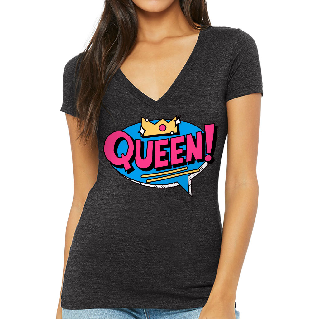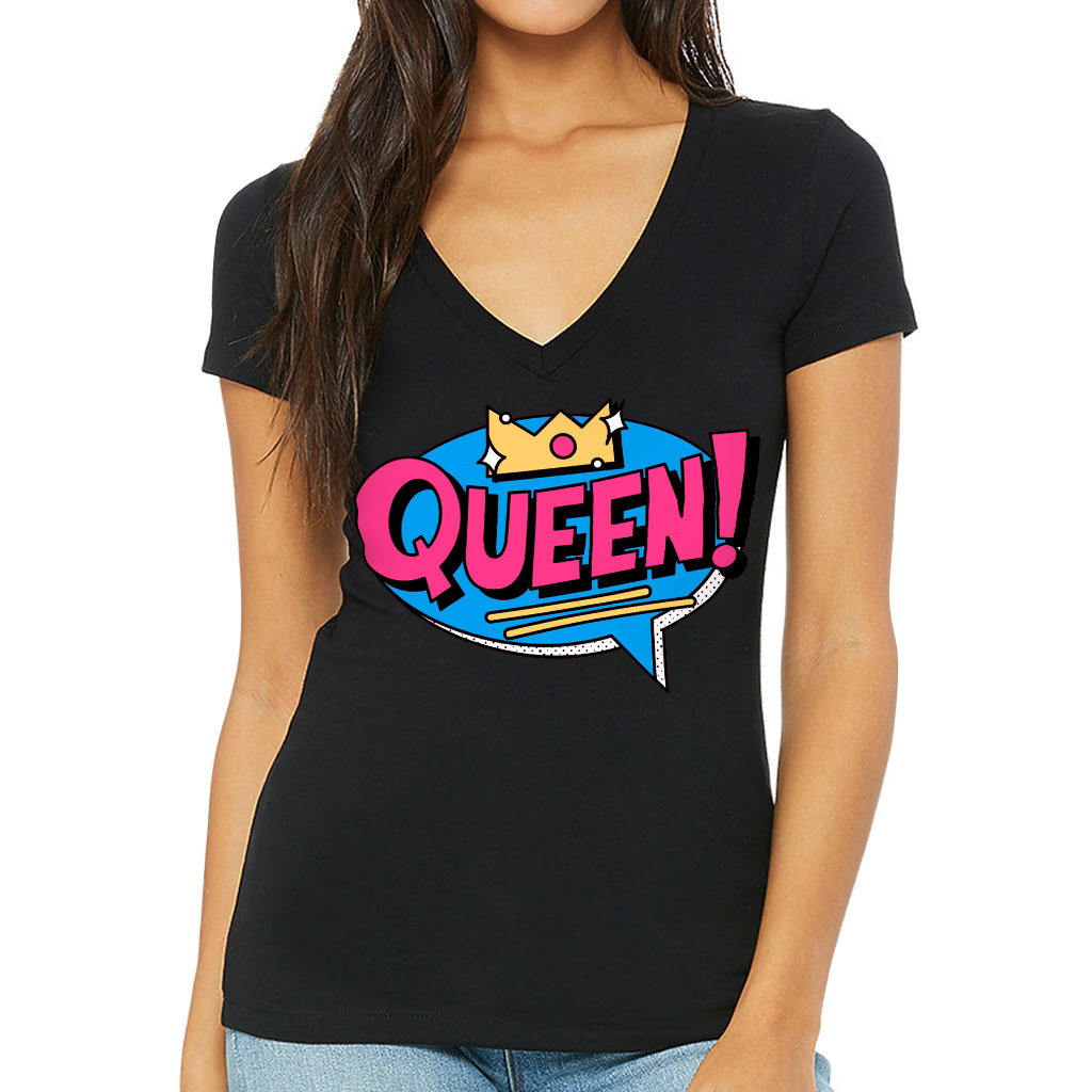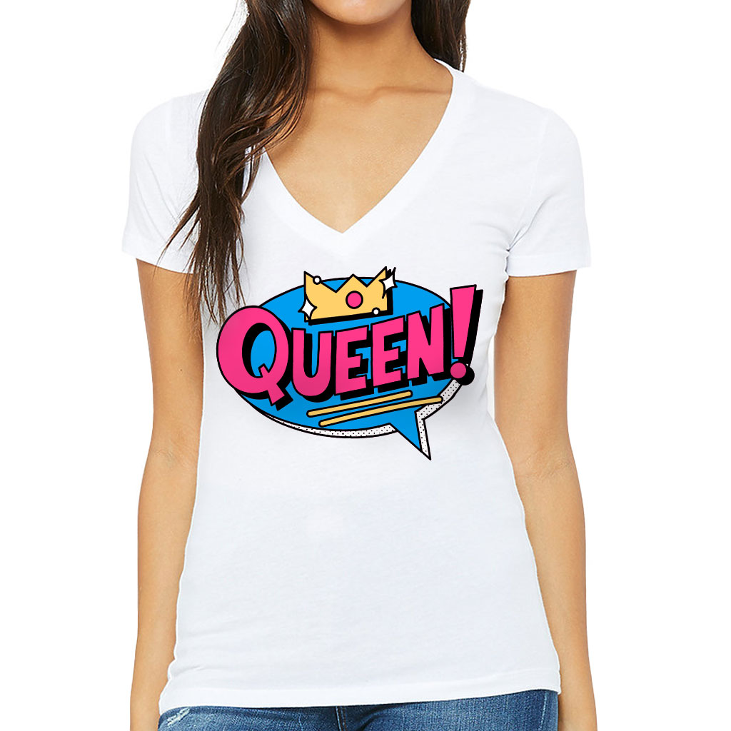 The fabric of our shirt is super soft, lightweight, breathable, and cozy. Queen Graphic Women’s V-Neck T-Shirt features a modern feminine fit, deep V-neck, short sleeves and superior Airlume combed and ring-spun cotton.