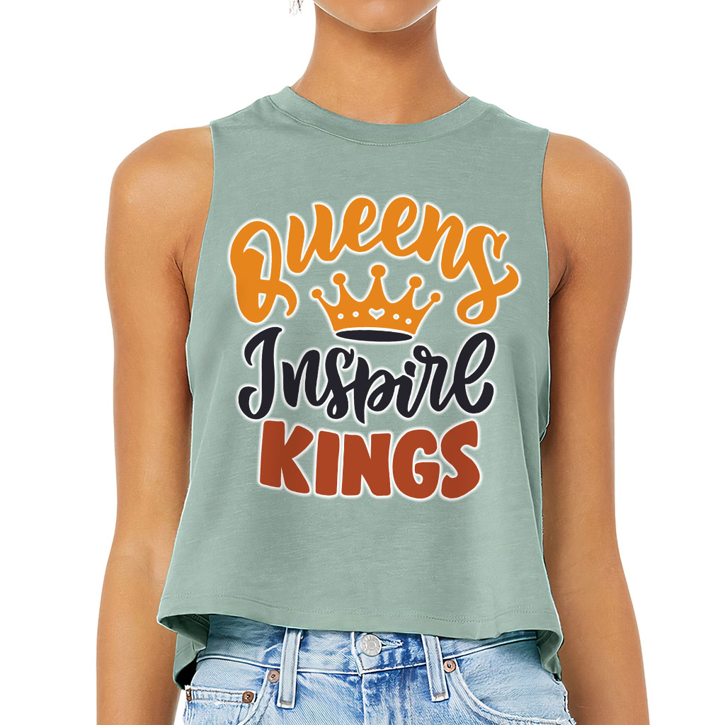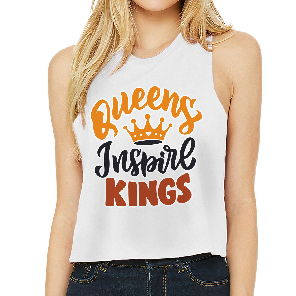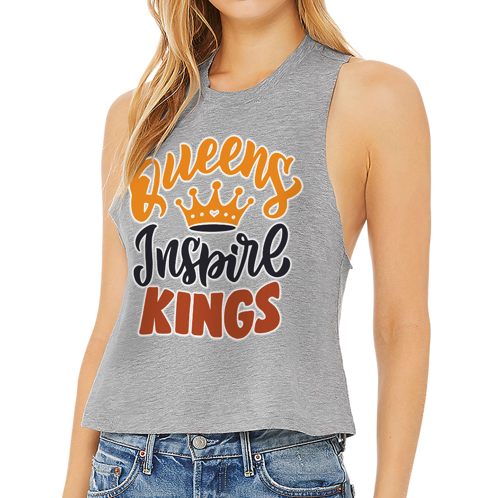 Queens Inspire Kings Racerback Cropped Tank is made of high-quality materials. 52/48 Airlume combed and ring-spun cotton/polyester jersey. Athletic Heather is 90/10 Airlume combed and ring-spun cotton/polyester jersey.