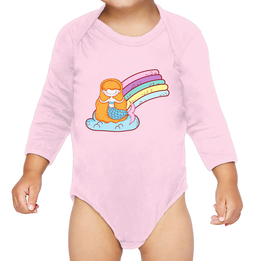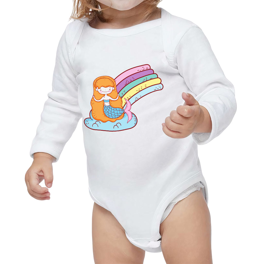 Rainbow Mermaid Baby Long Sleeve Onesie is made of 100% Cotton which makes it soft on the skin, breathable, lightweight, and comfortable to wear. Made of high-end materials, with sturdy stitching and non-fade colors, these bodysuits are extra-durable.