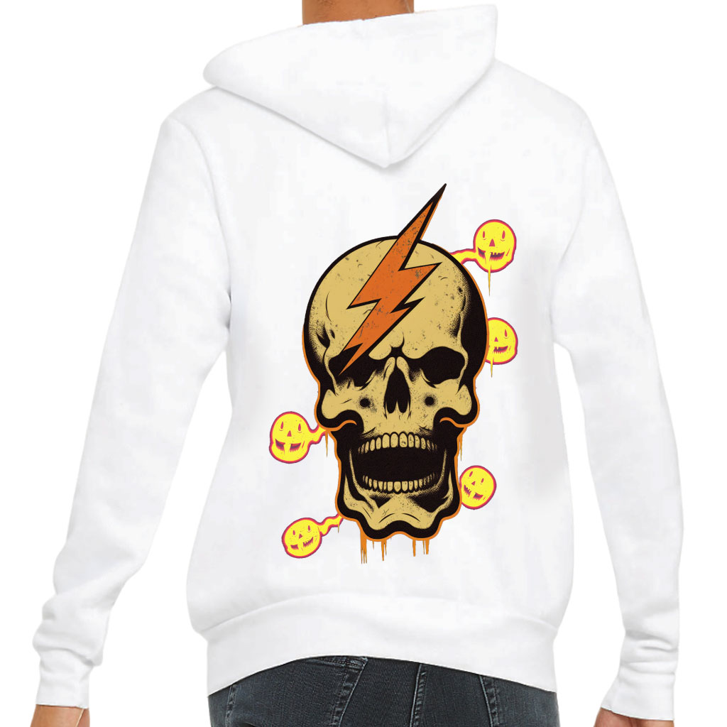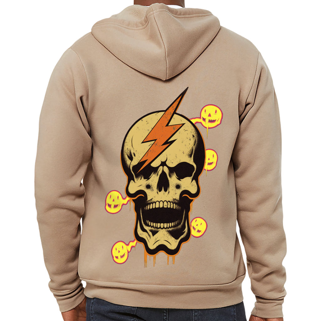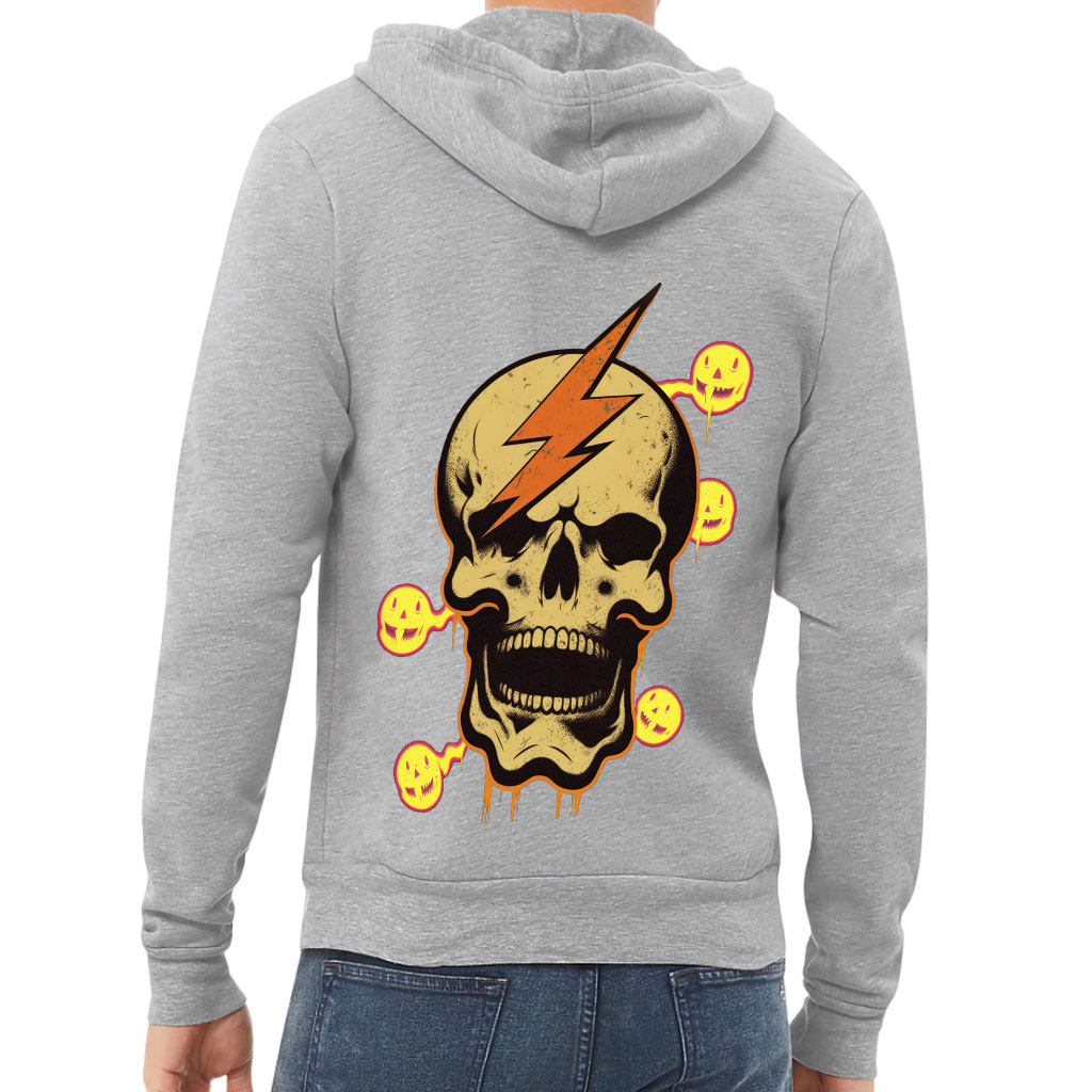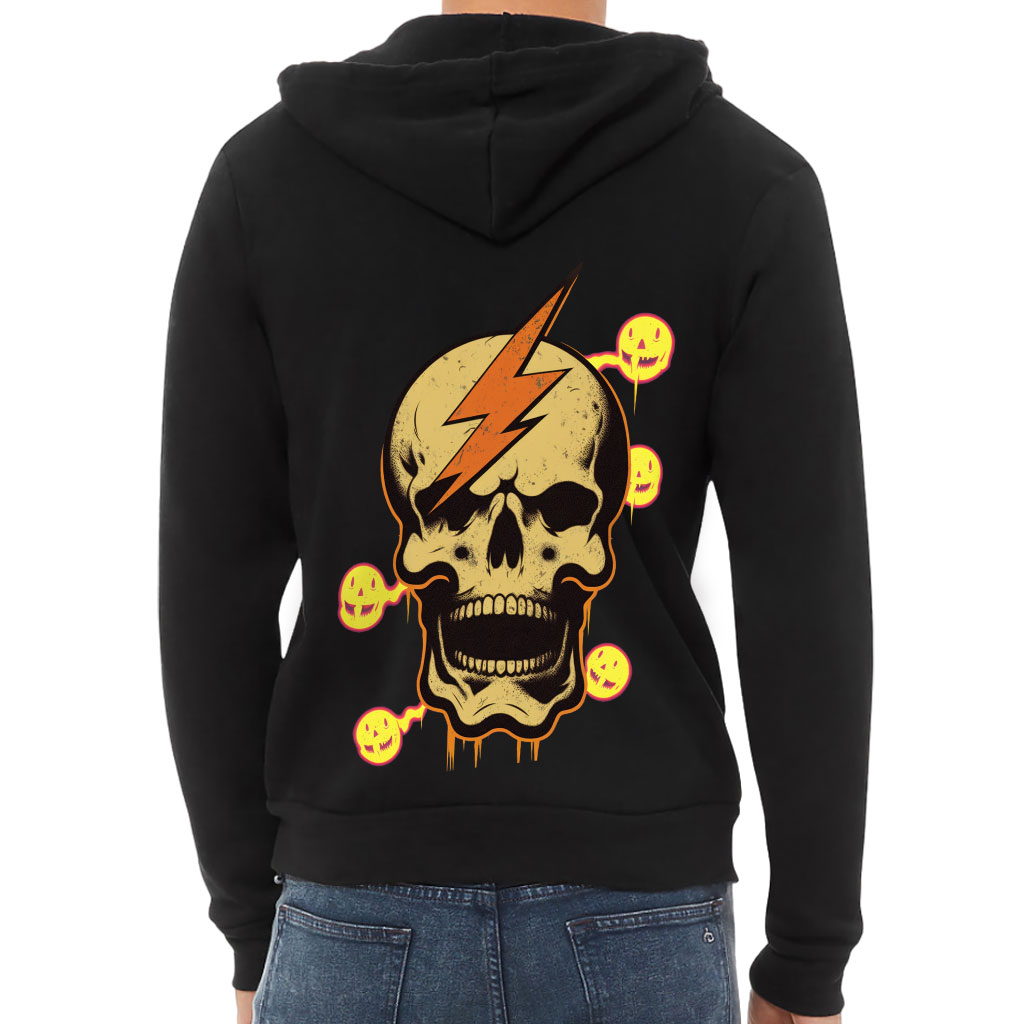 Tackle the elements in casual comfort by wearing Graphic Hooded Sweatshirt. This classic style is perfect for any adventure, from a morning jog to an evening bonfire. Durability has never looked so stylish! Our signature soft, lightweight fabric and ribbed cuffs and waistband make this hoodie stand out among the rest. Enjoy the extra layer of protection provided by a full zip closure with white taping; while white chord drawstring ensures your hoodie will stay snug no matter what activity you’re doing. Plus, kangaroo pockets add a bit of hand-warming flair. Look good and stay comfortable in Lightning Hoodie!