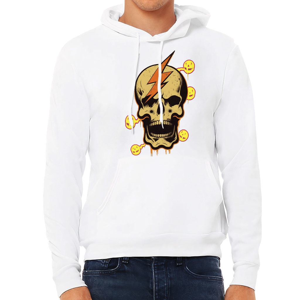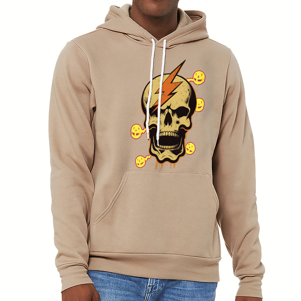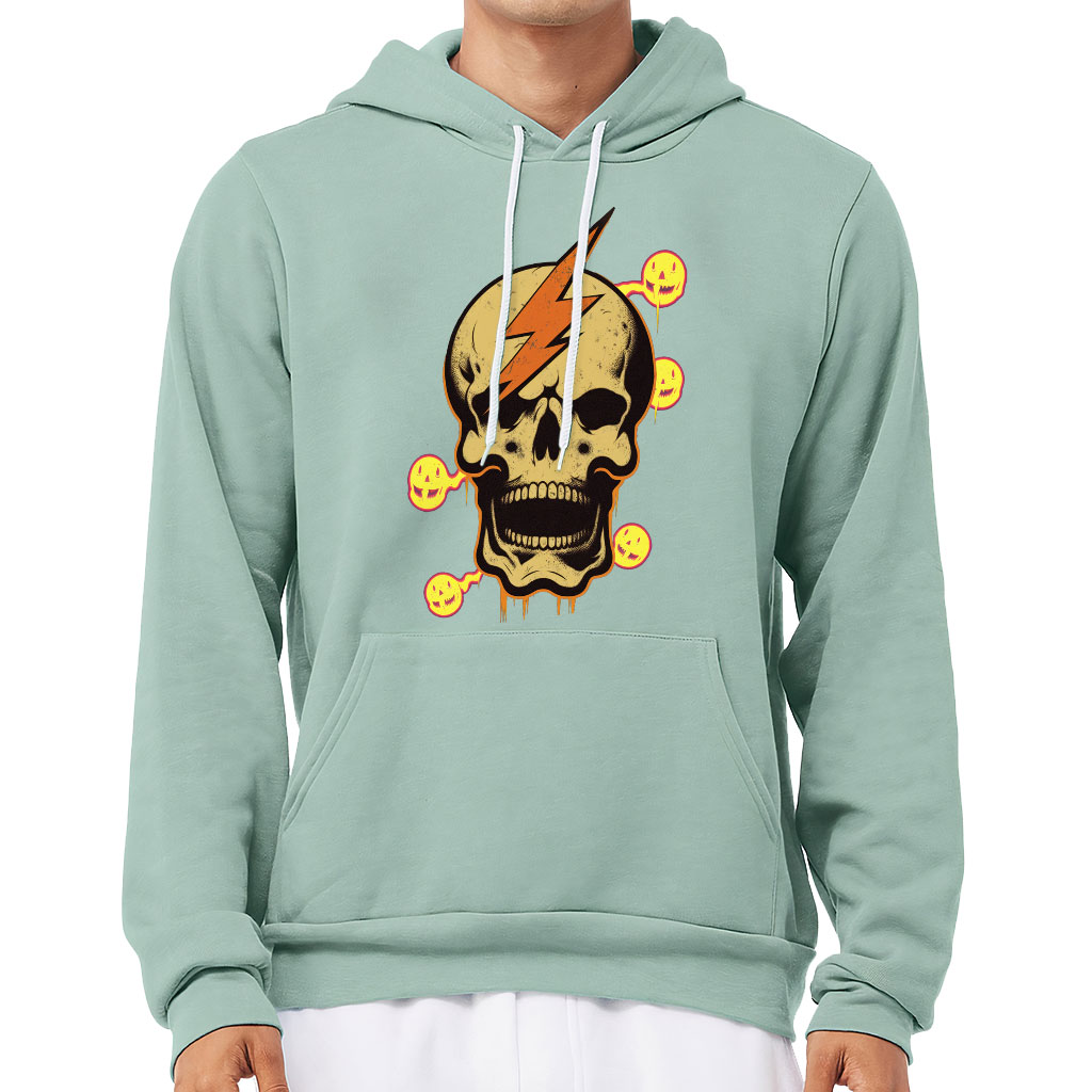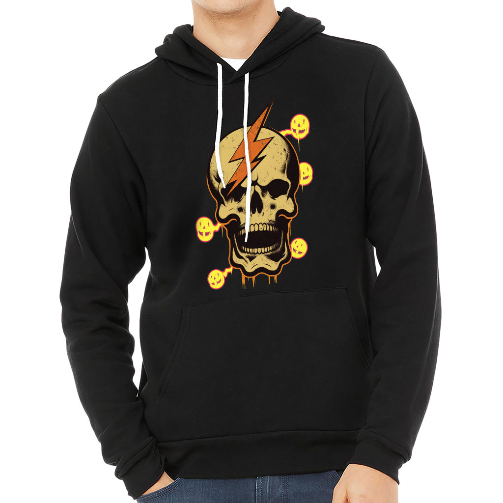 Skull Print Sponge Fleece Hoodie – Graphic Hoodie – Lightning Hooded Sweatshirt