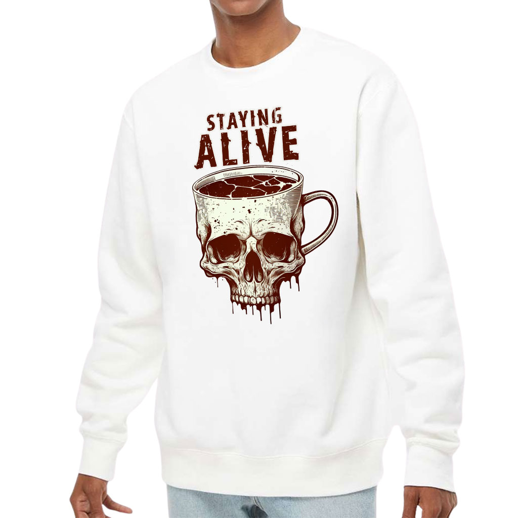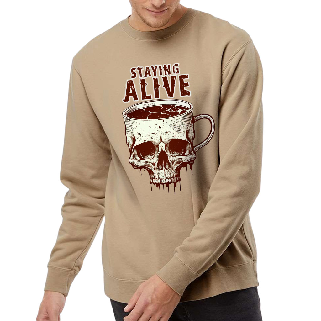 The high-quality fabric of Staying Alive Midweight Sweatshirt makes you feel good and comfortable when wearing it. Crew neck design allows you breathing room and comfort of next level.