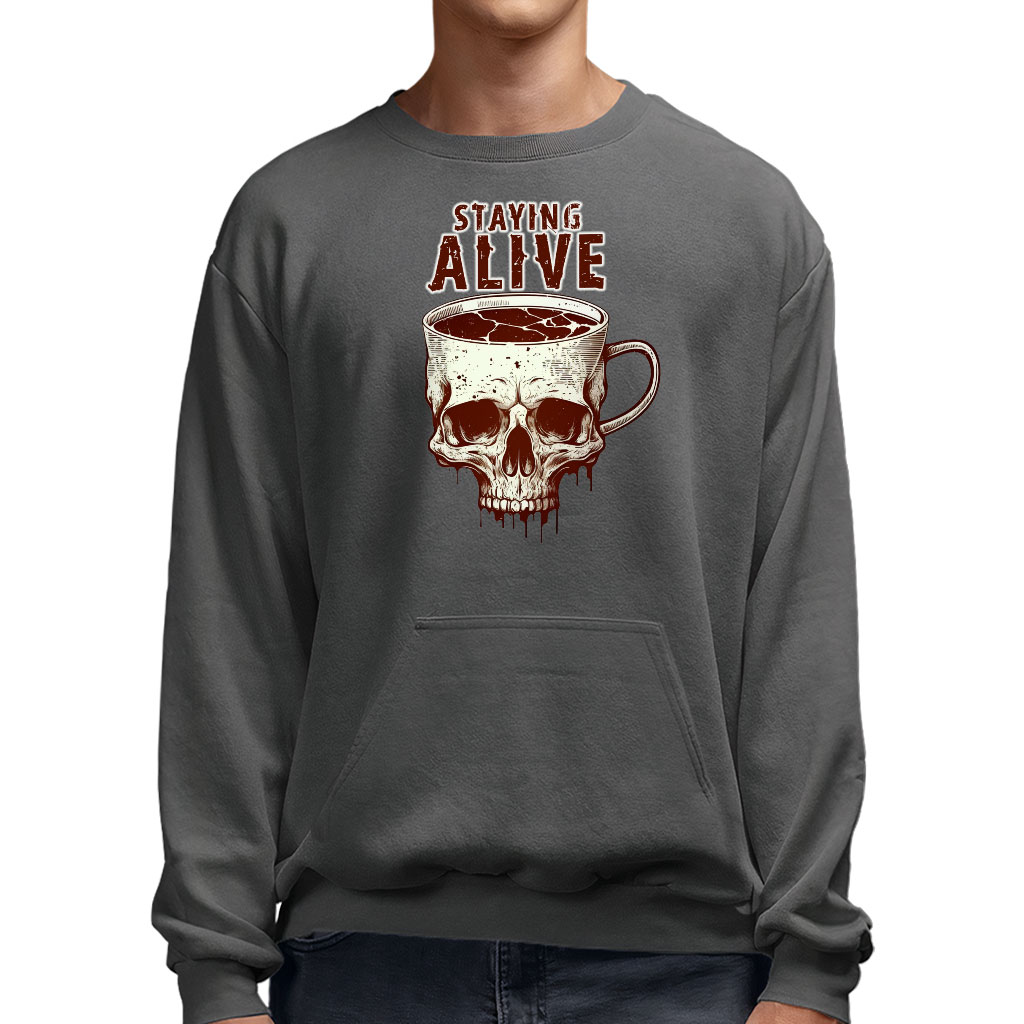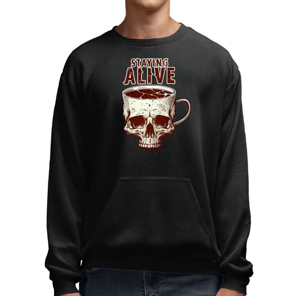 Staying Alive Sweatshirt with Pocket – Art Crewneck Sweatshirt – Cup Sweatshirt