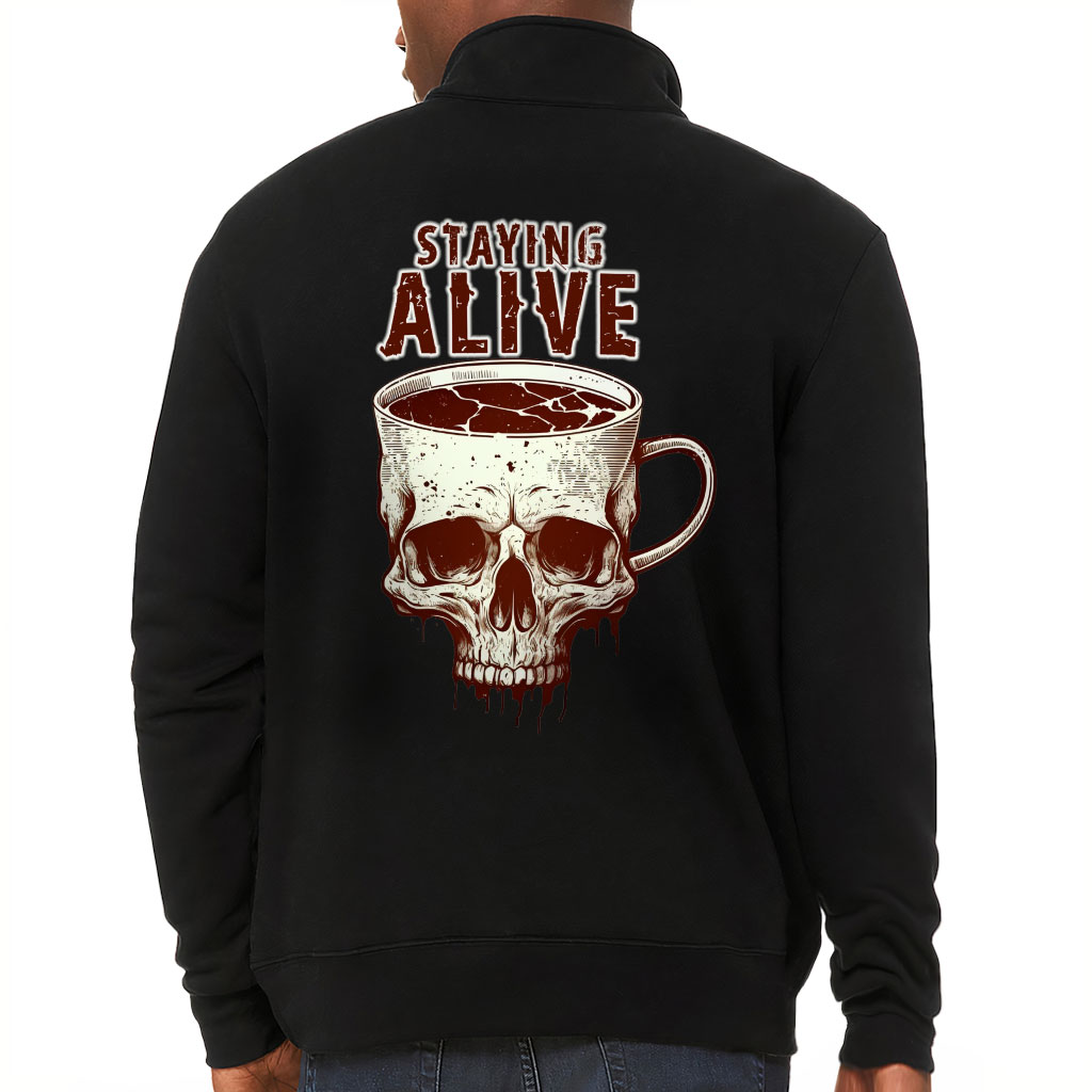 Staying Alive Zip Pullover will be a great gift for Birthdays, anniversaries, graduation ceremonies, Valentine’s Day, Christmas, Father’s Day, Thanksgiving, or any special event. Your loved ones will be pleased with such a sign of attention from you.