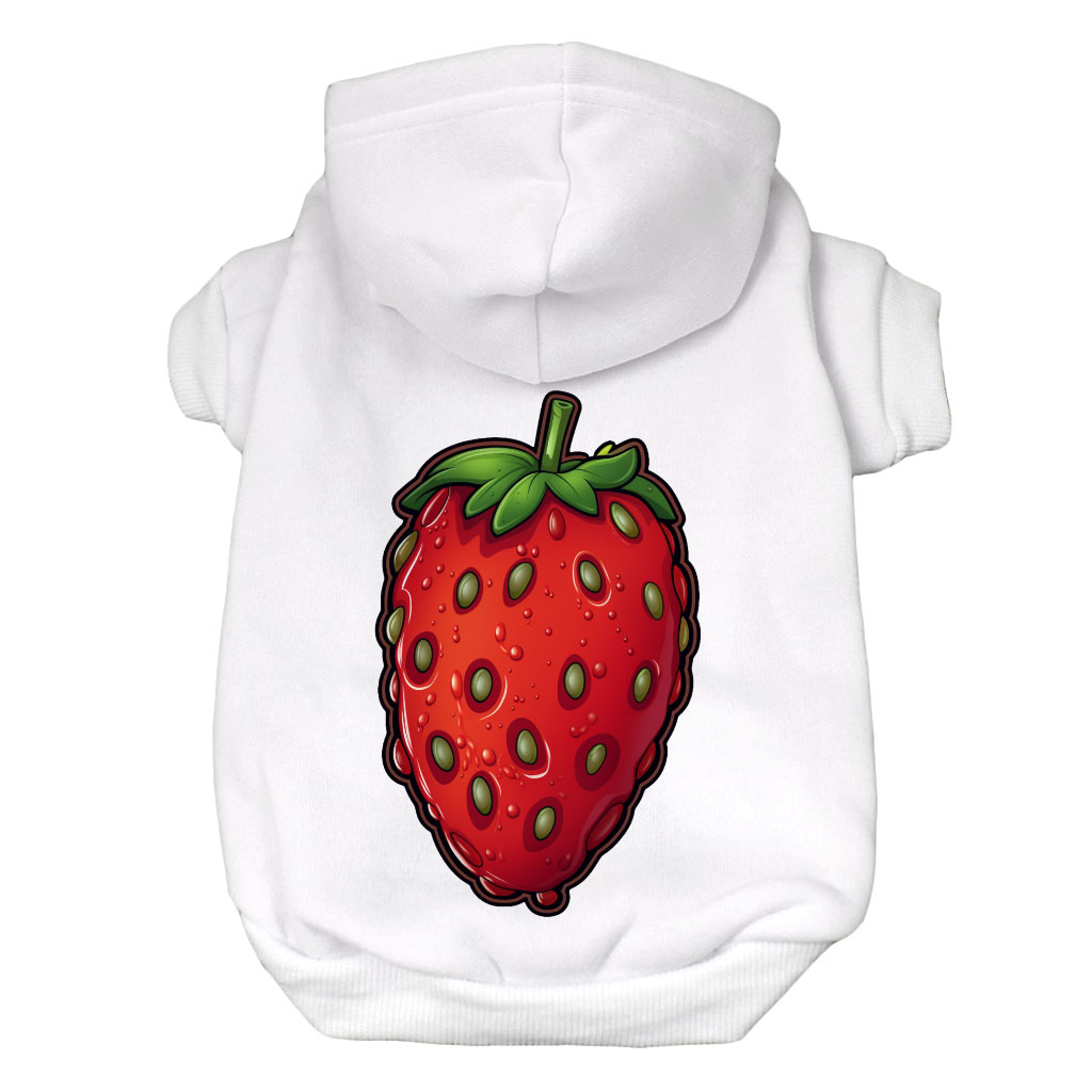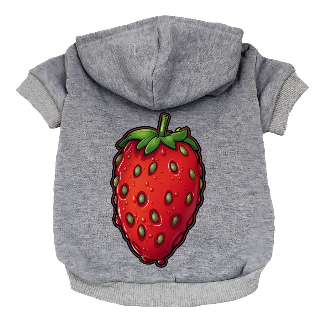 Comfortable, breathable coat to keep your dog warm in cold weather. Strawberry Print Dog Hoodie is designed for winter or autumn weather, it has ribbed sleeves and hem for a comfy fit.