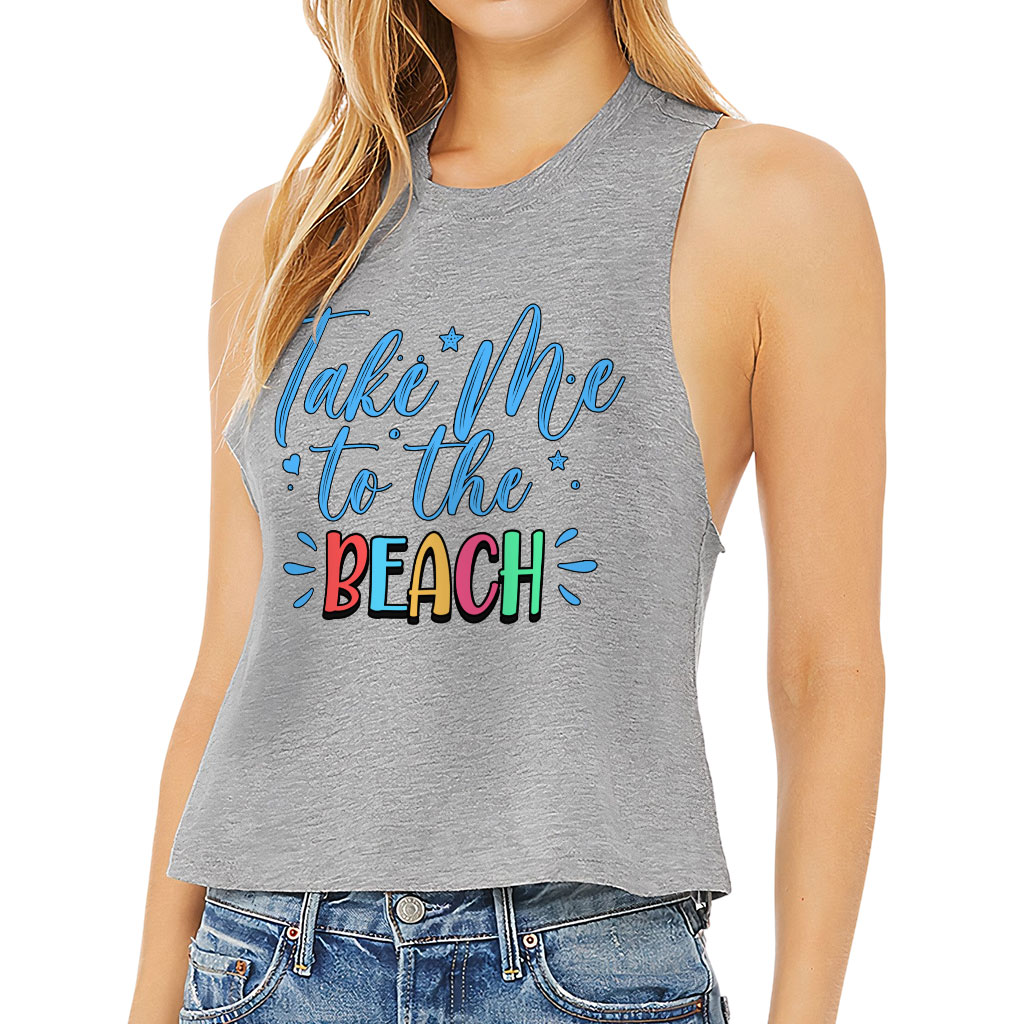 Take Me to the Beach Racerback Cropped Tank is made of high-quality materials. 52/48 Airlume combed and ring-spun cotton/polyester jersey. Athletic Heather is 90/10 Airlume combed and ring-spun cotton/polyester jersey.