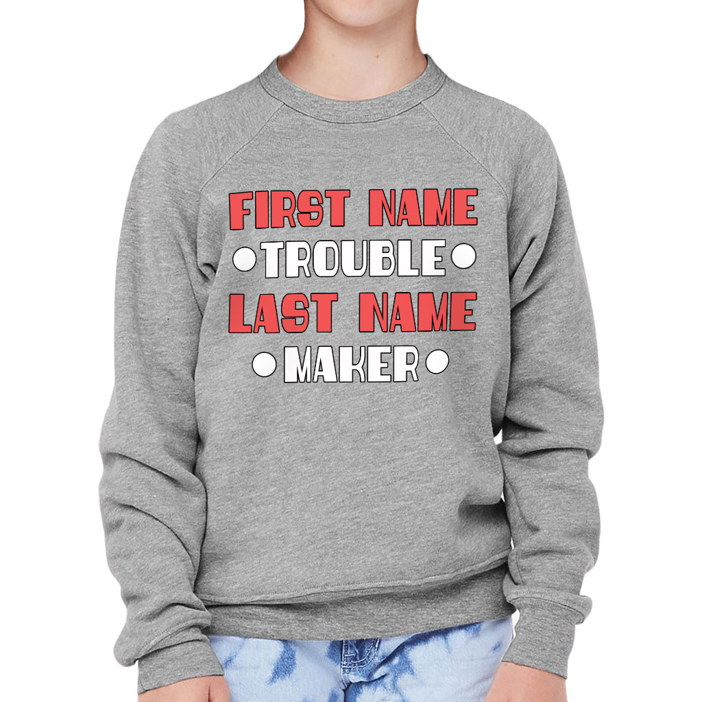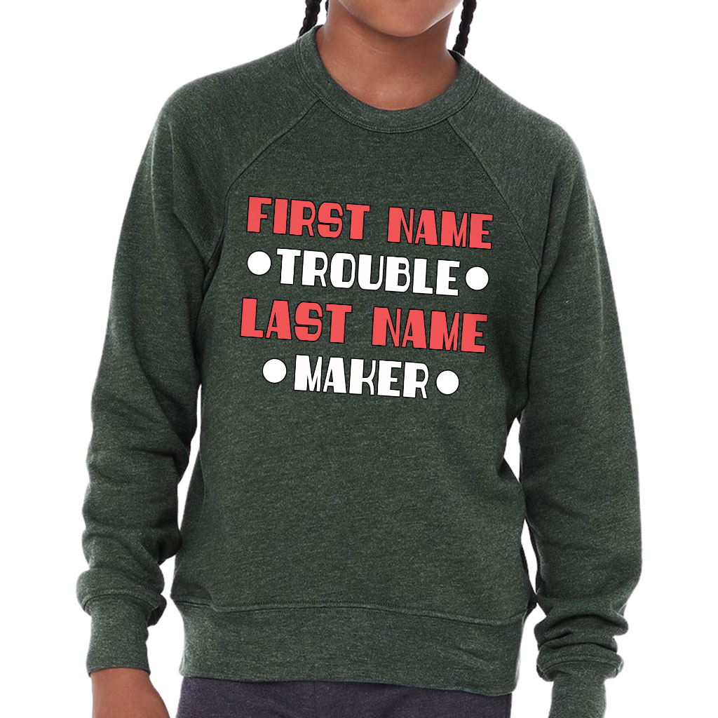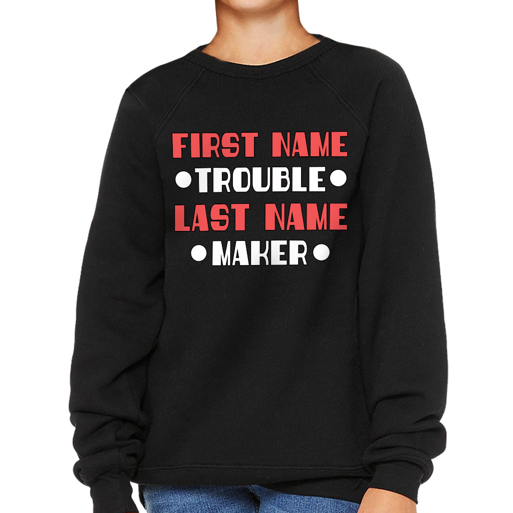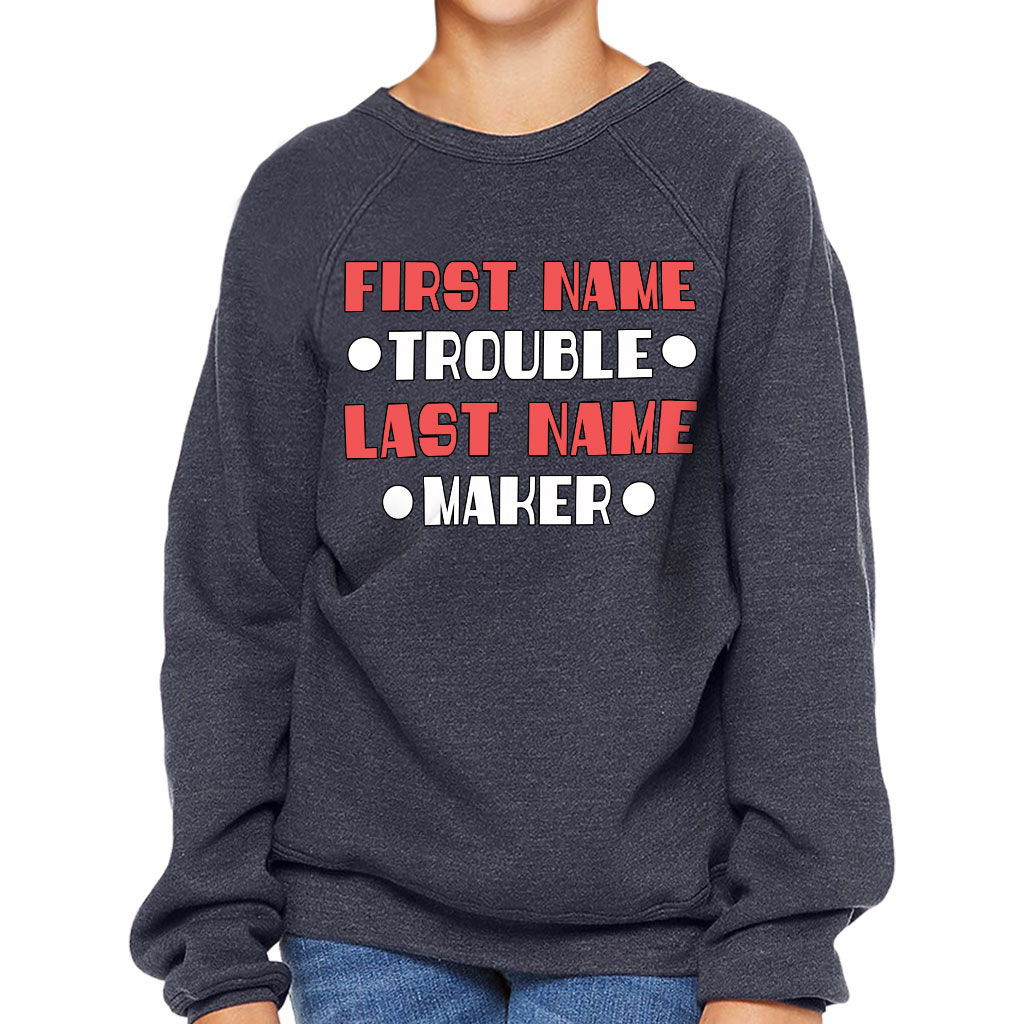 Trouble Maker Kids’ Raglan Sweatshirt will be a great gift for Birthdays, graduation ceremonies, Christmas, Thanksgiving, or any special event. Your loved ones will be pleased with such a sign of attention from you.