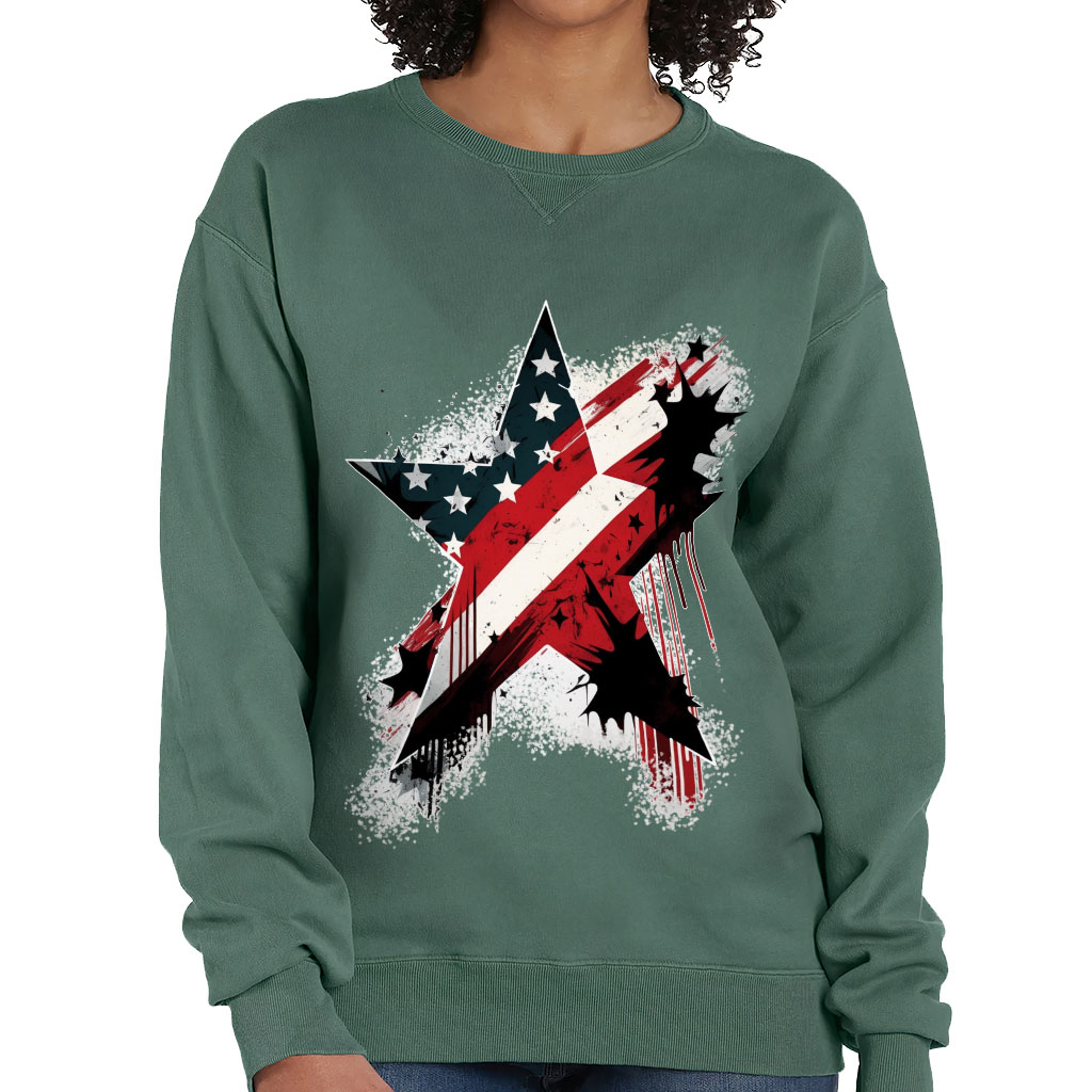 Star Print Women’s Sweatshirt is an absolute must-have for any fashion-forward woman who values quality and comfort. Its construction with thoughtful details and superior materials provides you with an unparalleled aesthetic starting with the twill neck tape, ribbed v-notch collar, and contrast cuffs and waistband. Double-needle cover stitching on every seam gives it a durable and striking look, while jersey locker patch adds a unique touch of attitude to your wardrobe. Show off your fashionable side in true style with Patriotic Sweatshirt!