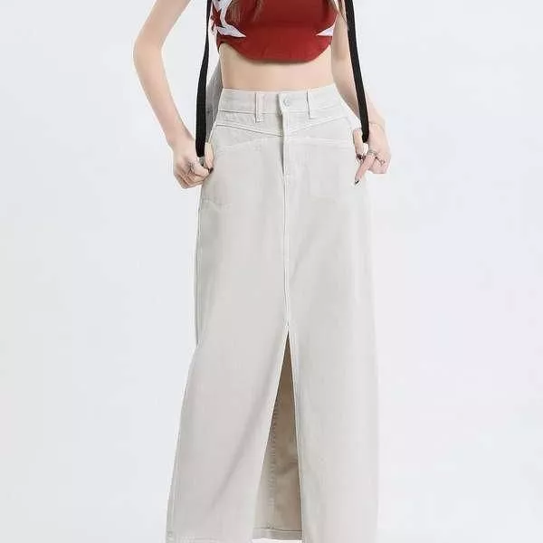 Our White High Waist Long Denim Skirt boasts a classic mid-calf length complemented by a modern straight cut and a sultry side split, adding a touch of allure to your every step. The solid pattern exudes a simplicity that makes it a breeze to pair with your favorite tops. Crafted from pure cotton denim, this skirt is a nod to quality and comfort, ensuring you feel fabulous with every wear.