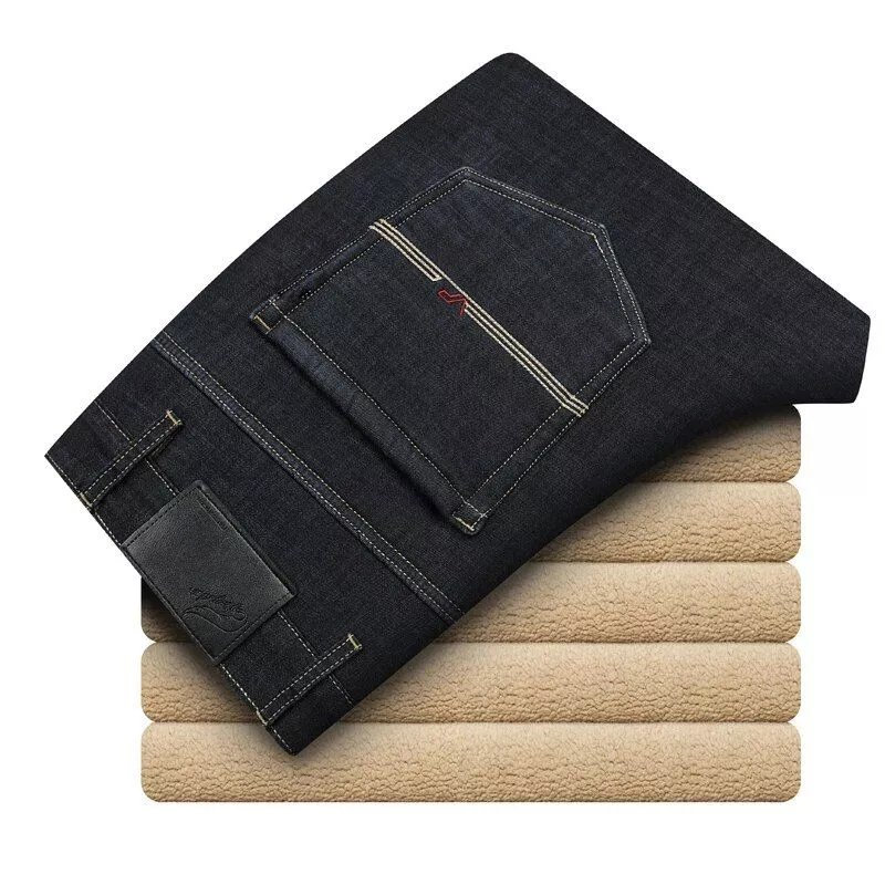 Winter Warm Thick Fleece-Lined Men’s Straight Leg Jeans