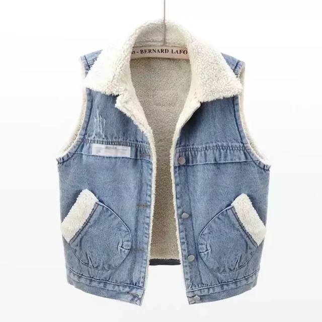Autumn-Winter Casual Fleece-Lined Denim Vest for Women