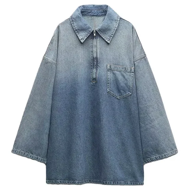 Loose-Fit Vintage Denim Blouse – Women’s Casual Spring Streetwear Top