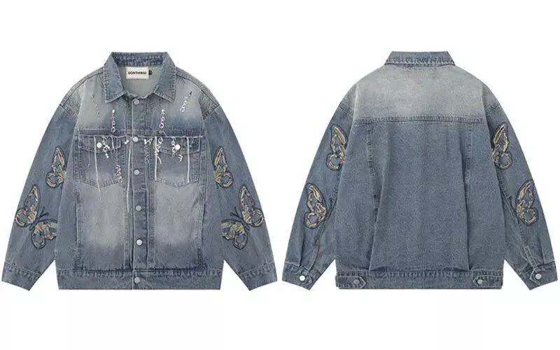Unleash Your Street Style with Our Embroidered Butterfly Denim Jacket