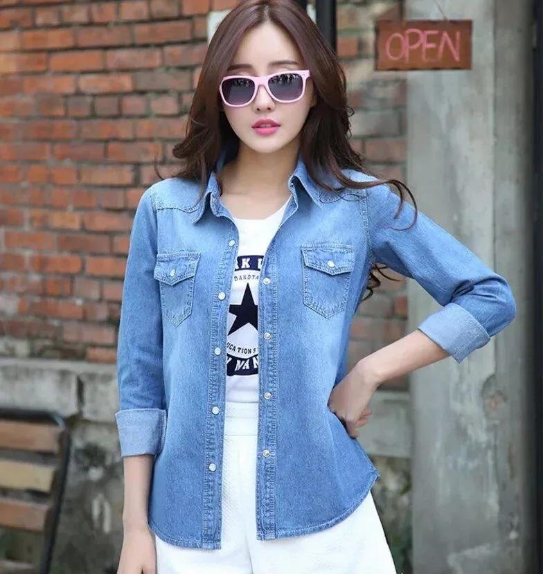 What sets this denim shirt apart is its attention to detail and quality. The pearl buttons add a touch of elegance to the classic denim look, elevating it beyond the ordinary. The precise cut and regular length make it flattering for middle-aged women, while the non-stretch denim ensures it keeps its shape throughout the day.