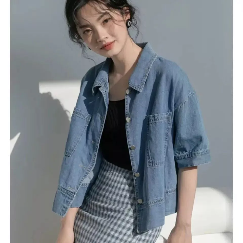 This denim shirt shines brightest in the summer and spring months. Its cropped length makes it ideal for pairing with high-waisted skirts or jeans, embodying the Ulzzang style. Perfect for ages 16-28 and beyond, it’s designed to suit all occasions – from casual college days to weekend getaways. The shirt is adaptable to both daily wear and special outings where making a cool, effortless statement is the goal.