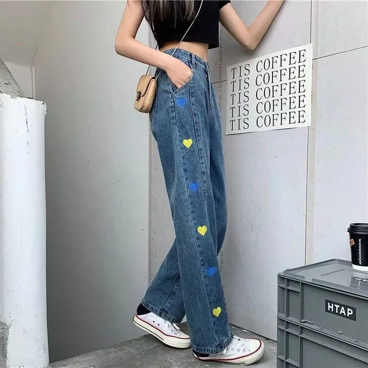 Introducing the ultimate blend of retro charm and contemporary fashion – our Vintage Heart Embroidered Jeans. These stylish bottoms are a true love letter to classic denim aesthetics, crafted for the modern woman who adores a blend of casual sophistication and comfort. Designed with a flattering high waist and a versatile wide-leg cut, these jeans are your perfect partner from a sunlit spring morning to a breezy summer evening. Their unique heart embroidery adds a dash of whimsy, ensuring you leave a trail of adoration wherever you go.